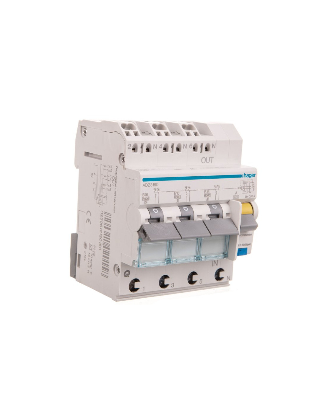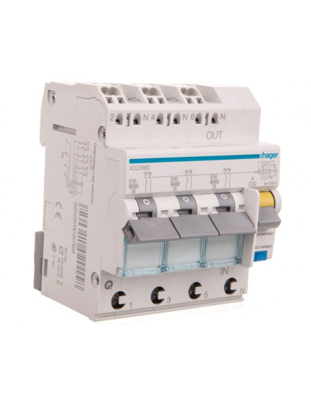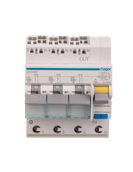 RCBO Wyłącznik różnicowoprądowy z członem nadprądowym 3x1P+N 6kA B 16A/30mA Typ A QC/QBB
