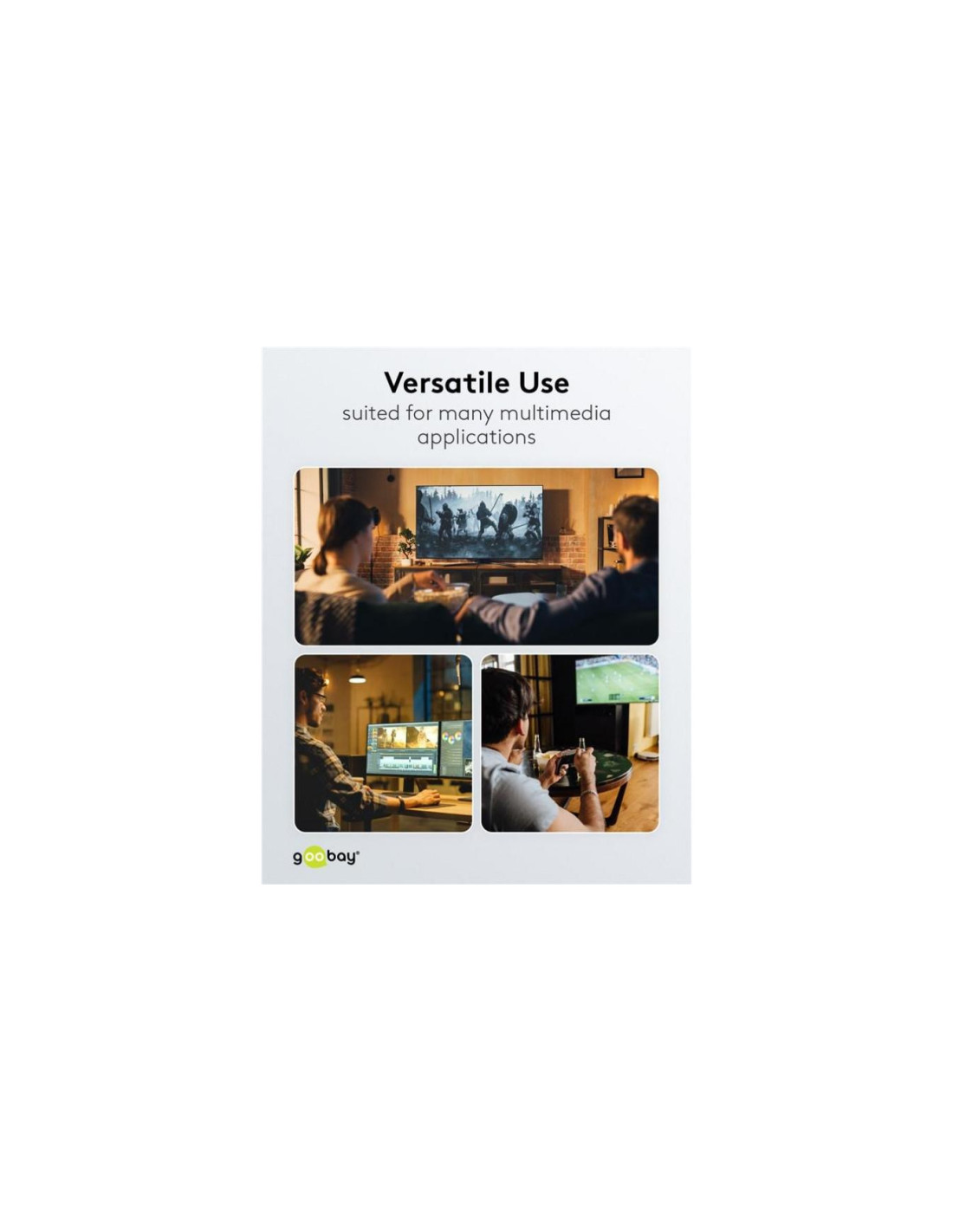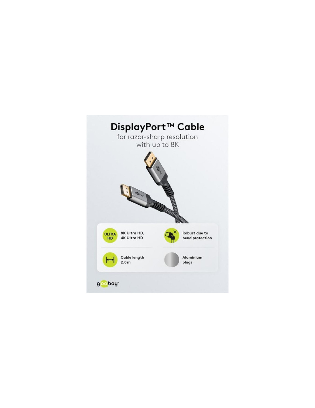 Seria Goobay Plus z wtyczkami w smukłej, eleganckiej metalowej obudowie w kolorze Sharkskin Grey. Dzięki standardowi DisplayPort 1.4, kabel zapewnia wyjątkowo wysoką przepustowość - dla płynnego odtwarzania obrazu bez rozrywania ekranu lub drgań podczas grania i ostrej jak brzytwa rozdzielczości do 8K.