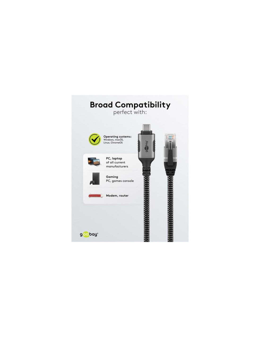 Kabel LAN umożliwia stabilne, przewodowe połączenie internetowe z urządzeniami USB-C™ bez własnego kabla sieciowego
