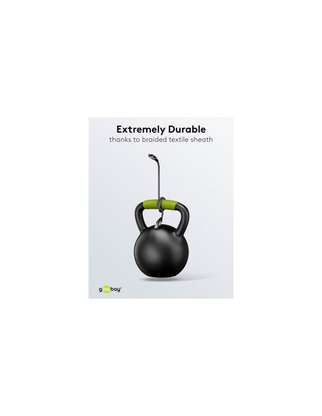 Pleciona, wytrzymała tekstylna osłona kabla USB jest przyjemna w dotyku i delikatna dla wrażliwych powierzchni