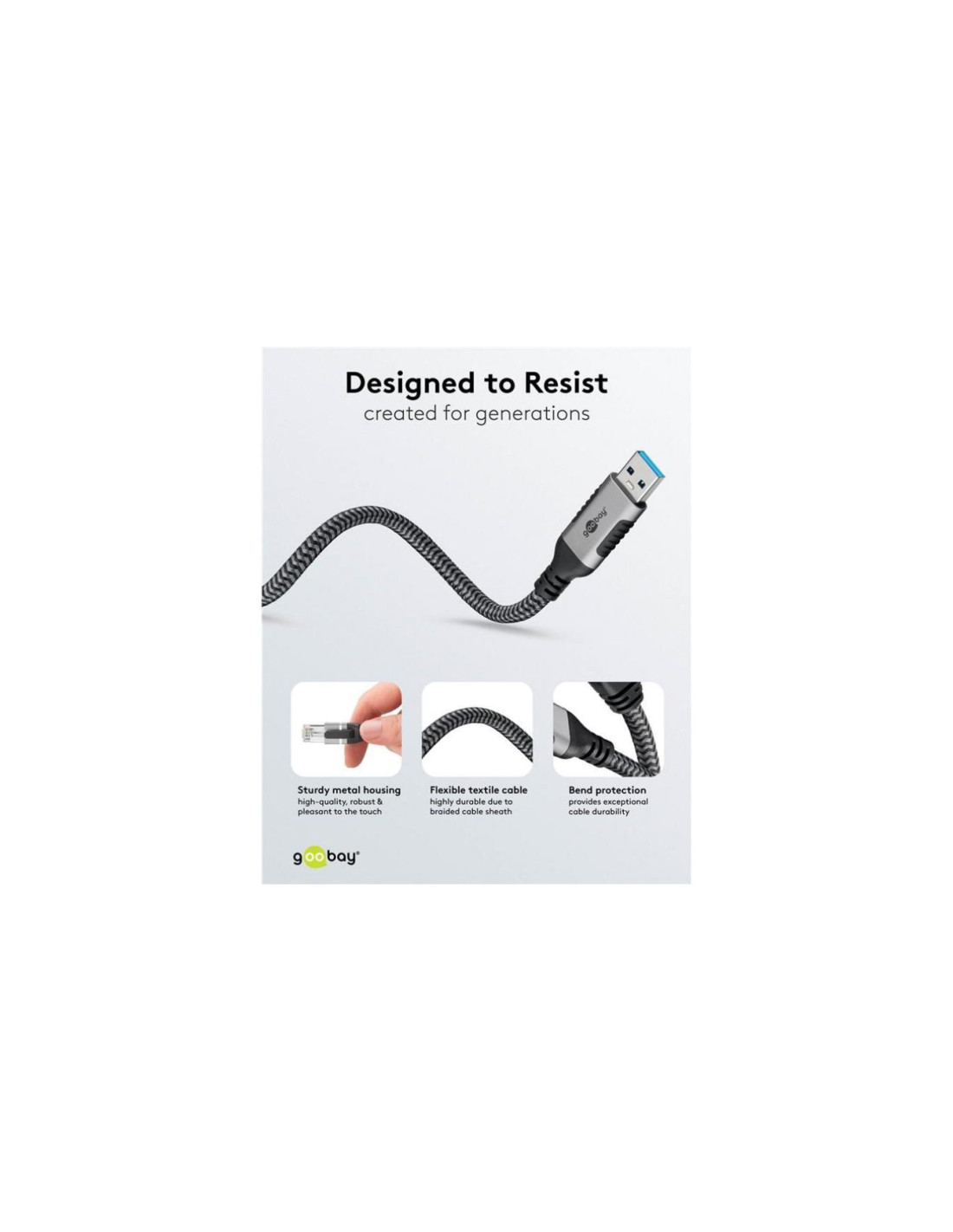 Pleciona, wytrzymała tekstylna osłona kabla USB jest przyjemna w dotyku i delikatna dla wrażliwych powierzchni