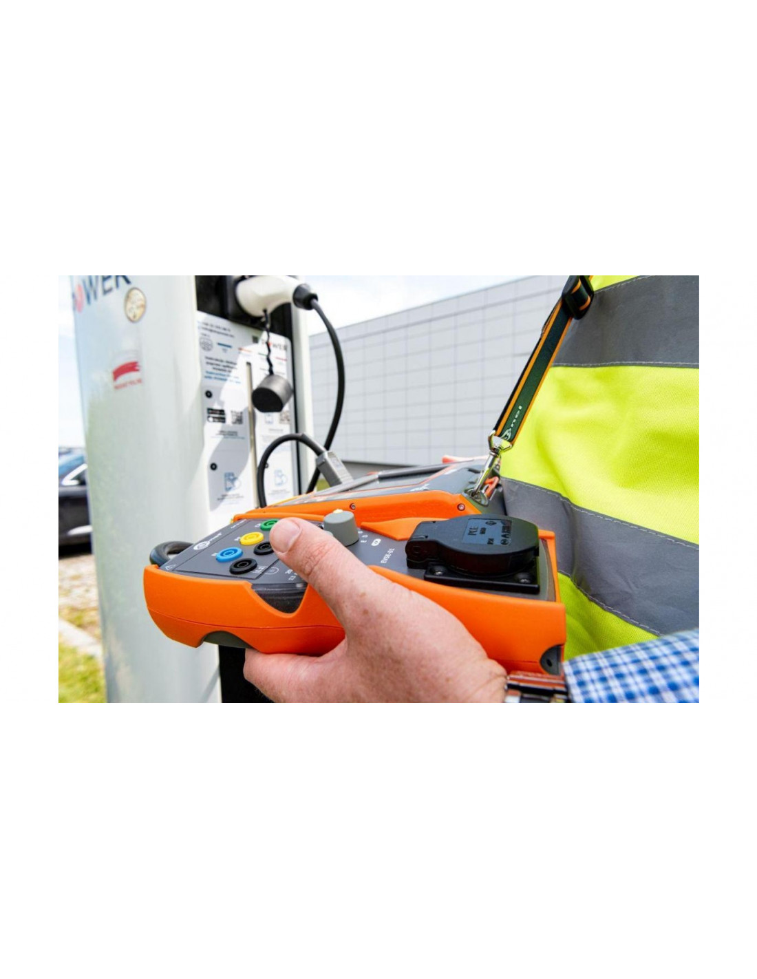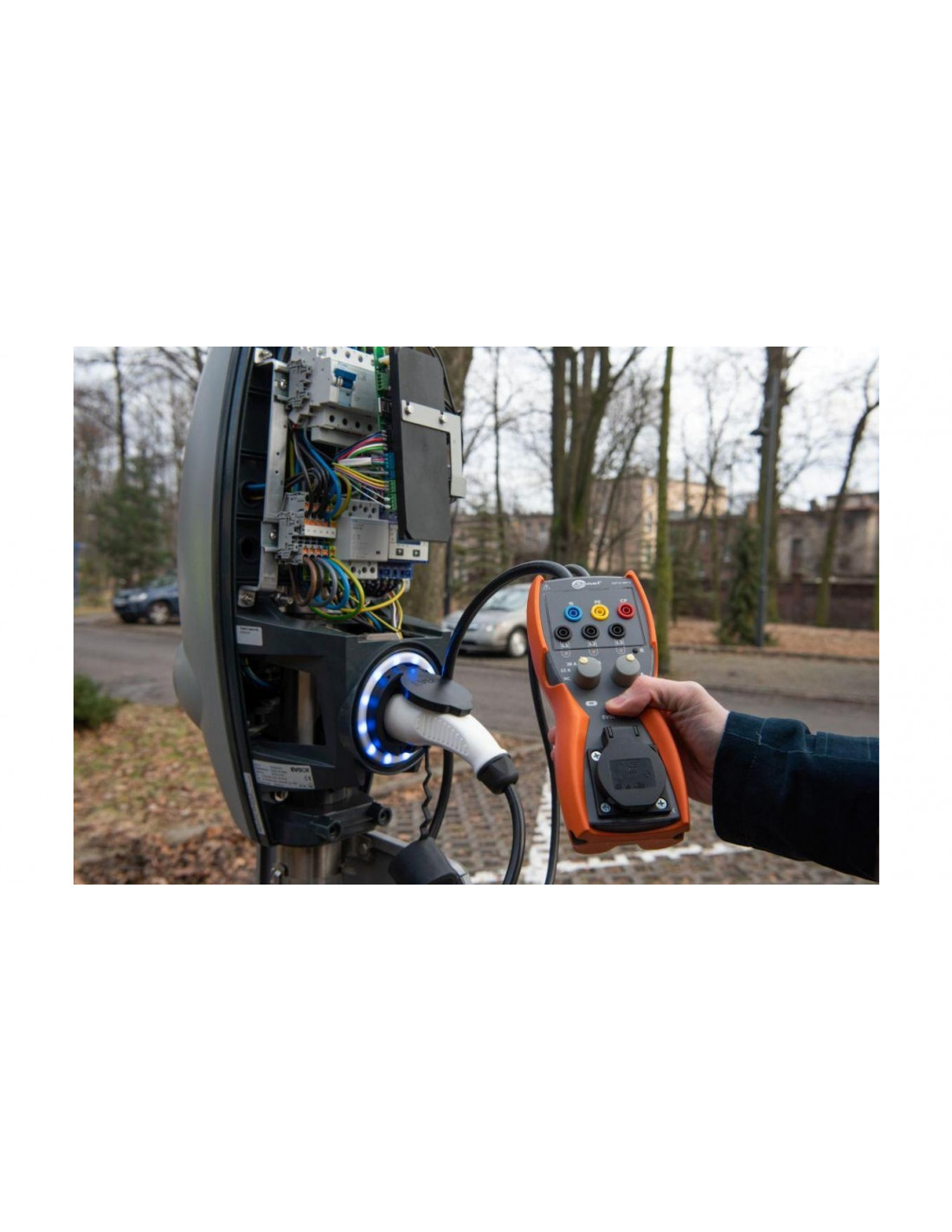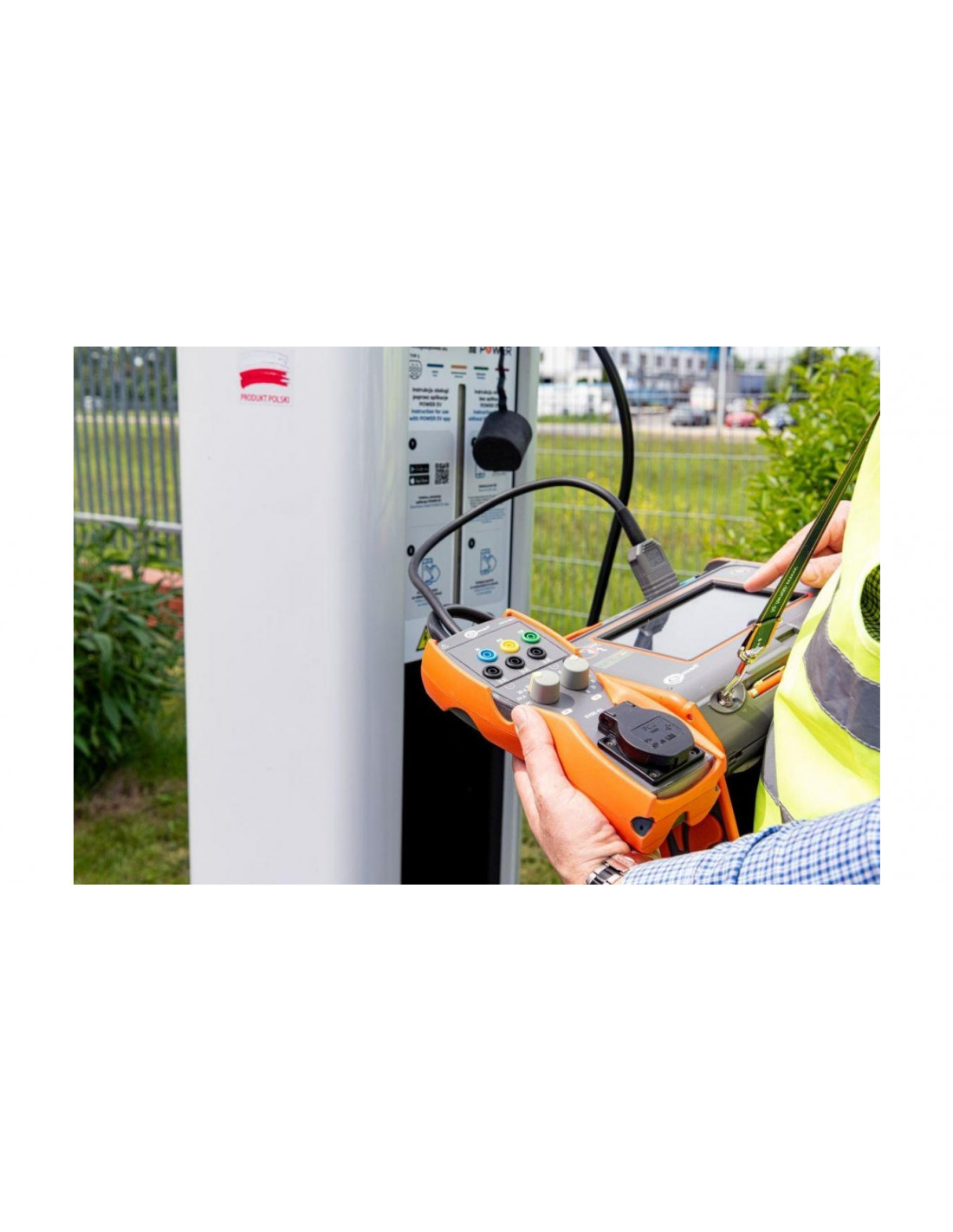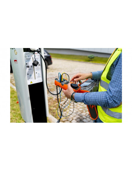 Adapter pozwala na wykonanie kompleksowych pomiarów stacji ładowania pojazdów elektrycznych - szybko i zgodnie z obowiązującymi przepisami. Symulując kabel ładujący (linia proximity pilot - PP) i status podłączenia pojazdu (linia control pilot - CP), wprowadzi stację w różne stany pracy. Umożliwi w ten sposób pomiary z zakresu ochrony przeciwporażeniowej: impedancję pętli zwarcia Z S , rezystancję izolacji R ISO i sprawdzenie parametrów wyłączników różnicowoprądowych RCD. Dla ułatwienia diagnostyki, na jedno z gniazd EVSE-01 wyprowadzony jest również sygnał modulacji szerokości impulsu (PWM).