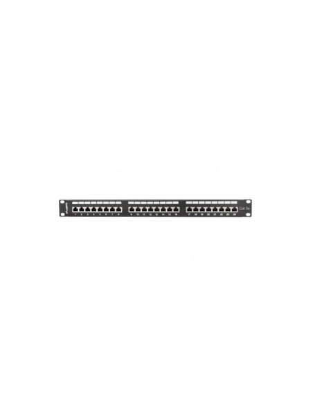 Patch panel teleinformatyczny został zaprojektowany do wykorzystania w głównych i pośrednich punktach dystrybucyjnych w szybkich sieciach teleinformatycznych. Jest pasywnym elementem okablowania strukturalnego stosowanym do zakańczania i organizowania kabli typu skrętka w szafach rack 19". Patch panel wyposażony jest w 24 ekranowane porty RJ-45 kategorii 5e. Zastosowanie złącz IDC/LSA zapewnia łatwy i szybki montaż. Usztywniona półka wraz z uchwytami zapewnia łatwą organizację kabli i stabilność montażu.