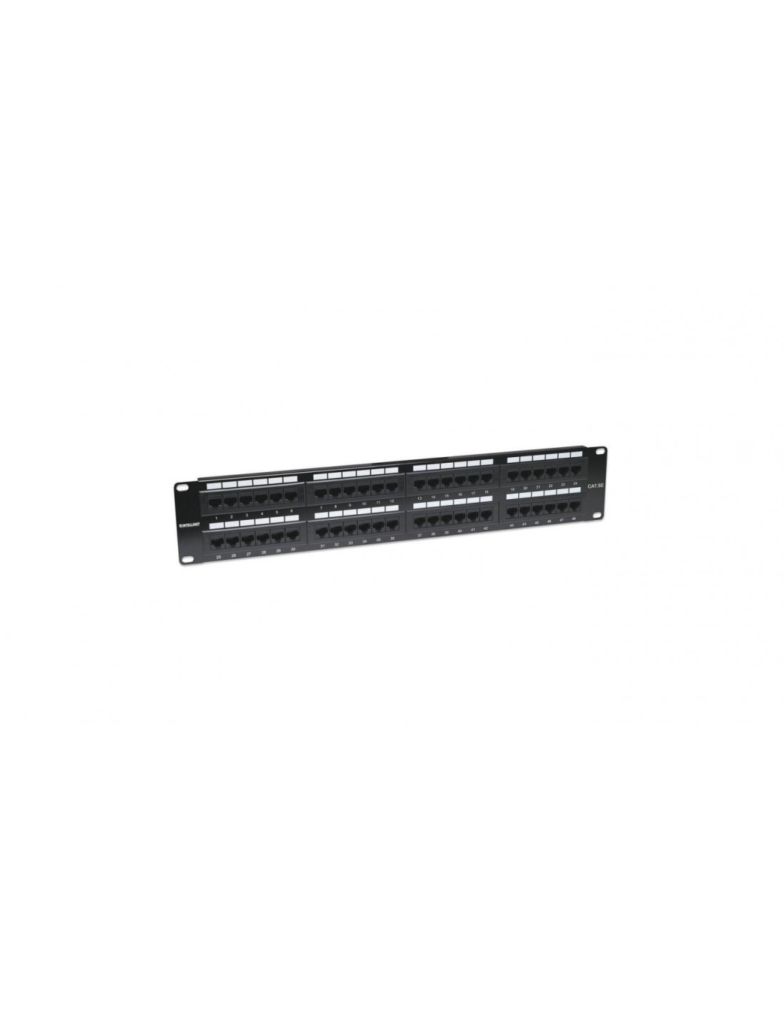 Patch Panel Intellinet 513579 – Panel Krosowy 19” 48-Portów RJ45 U/UTP Kat 5e Rack 19” 2U Opis produktu: Wytrzymałe mocowanie miedzianej żyły wykorzystujące pozłacane styki 3 mm pokryte 50-mikronowym złoceniem Zarabianie kabla narzędziem uderzeniowym standardu 110 oraz Krone Przystosowane do kabli od 22 do 26 AWG, zarówno linki, jak i drutu Do zastosowania z nieekranowaną skrętką (UTP) Cat5e Idealny do sieci Ethernet, Fast Ethernet oraz Gigabit Ethernet Zakończenie sieci strukturalnej portami RJ45 Wysokość montażowa 2U Montaż w standardzie rackowym 19" Gwarancja "Lifetime Warranty" Obsługiwane standard: IEEE 802.3 (10Base-T Ethernet) IEEE 802.3u (100Base-TX Fast Ethernet) IEEE 802.3ab (1000Base-T Gigabit Ethernet) Certyfikaty: UL E313857 RoHS Parametry fizyczne: Cat5e U/UTP 48-Portów RJ45 Wymiary: 482 x 88 x 48 mm Odległość w poziomie pomiędzy lewymi i prawymi otworami montażowymi: 465 mm Odległość w pionie pomiędzy górnym i dolnymi otworami montażowymi: 75.8 mm Waga: 1,27 kg Temperatura pracy: -40° - 80°C Zawartość opakowania: Patch Panel UTP Cat5e 48-Portów RJ45 4 Śrubki montażowe Instrukcja szybkiej instalacji