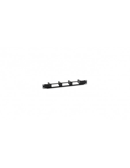 Opis produktu Poziomy organizer kabli, ułatwia zarządzenie przewodami Przeznaczony do szaf rackowych 19”, stojących oraz wiszących Czteropunktowy montaż do pionowych szyn rack Wyposażony w 4 pierścienie 3 otwory przelotowe dla kabli Wysokość montażowa 1U Szybka i łatwa instalacja Parametry techniczne Wysokość: 1U Szerokość: 19” Wymiary: 44 (wys.) x 82 (gł.) x 482,6 (szer.) mm Wymiary pierścienia: 67 (gł.) x 44 (wys.) mm Materiał wykonania: metal (panel montażowy), tworzywo sztuczne (pierścienie) Kolor: czarny Waga: 0,39 kg