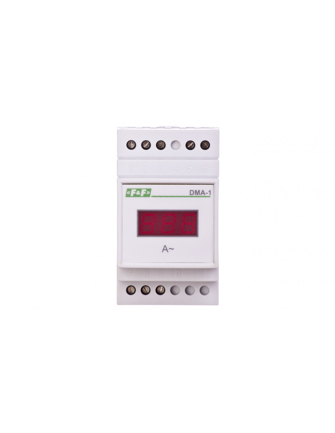 Amperomierz DMA-1 służy do ciągłego odczytu wartości obciążenia obwodu elektrycznego sieci 1-fazowej. Jego obwód pomiarowy jest odseparowany od obwodu zasilania. Produkt ma szerokość 3 modułów, czyli 52,5 mm i wysokość 90 mm. Jego zakres pomiarowy wynosi od 0 do 20 Ix. Wykonano go w 1 klasie dokładności. Spełnia on wymagania międzynarodowych, rygorystycznych norm bezpieczeństwa i jakości.