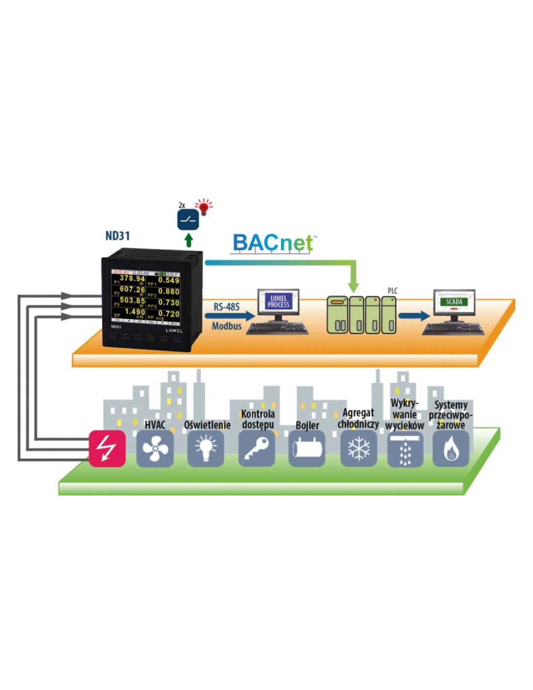 Pomiar 54 parametrów, harmonicznych prądów i napięć do 63ciej, programowany protokół komunikacyjny, graficzny-konfigurowany przez użytkownika oraz nowoczesny i wygodny w użyciu serwer www - to tylko niektóre zalety najnowszego miernika parametrów sieci ND31.