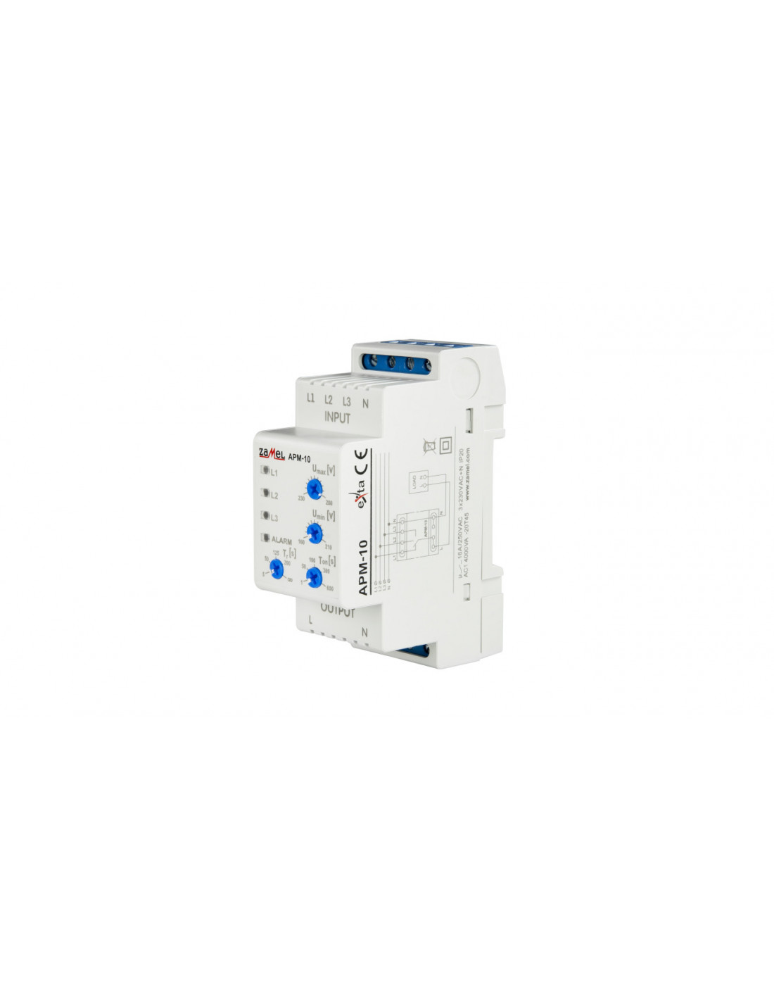Bogata oferta firmy Zamel składa się między innymi z automatycznego przełącznika faz, którego powyższy model jest przeznaczony do umieszczenia na szynie DIN. Dzięki temu zarówno instalacja, jak i późniejsza obsługa aparatury będzie łatwa i szybka. Artykuł nie jest przeznaczony do pracy w otoczeniu, w którym występuje pył, kurz i wilgoć, dlatego producent oznaczył aparaturę symbolem stopnia ochrony IP20. Wpływ powyższych czynników mógłby niekorzystnie wpłynąć na dalsza pracę sprzętu i zmniejszyć jej wydajność. warto zatem wziąć pod uwagę te cechy podczas planowania miejsca pracy urządzenia. Przełącznik posiada trzy styki zwierne. Głębokość wbudowania aparatury sięga 65 mm. Produkt prawidłowo i bezpiecznie pracuje przy zmiennym napięciu sterowania, które wynosi 230 V. Maksymalna wartość napięcia dla styków kontroli wynosi 250 V. Maksymalna moc łączeniowa dla styków sterowania jest równa 4000 VA. Maksymalny prąd ciągły urządzenia liczy 16 A. Podobną wartość osiąga prąd zadziałania oraz prąd znamionowy powyższego sprzętu.