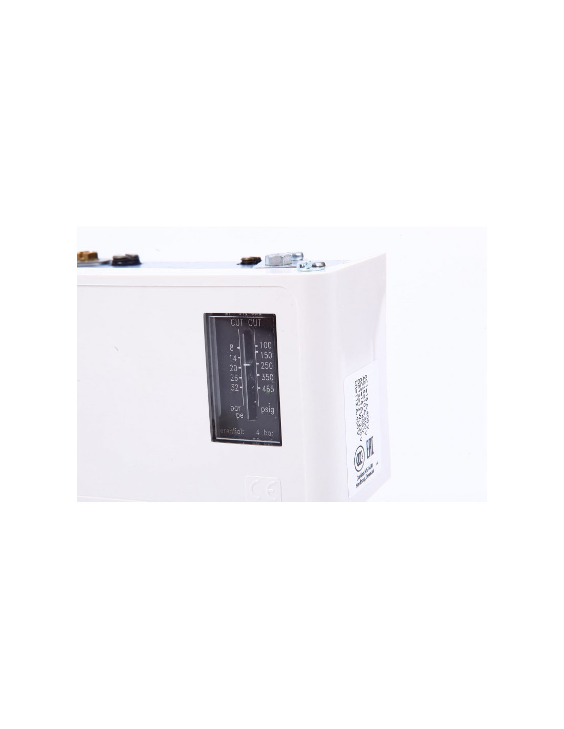 Presostat mechaniczny z funkcją autoreset. Możliwość regulacji dyferencjału w zakresie 0,7 - 4 bar na niskim ciśnieniu, dyferencjał stały 4 bar na wysokim ciśnieniu.