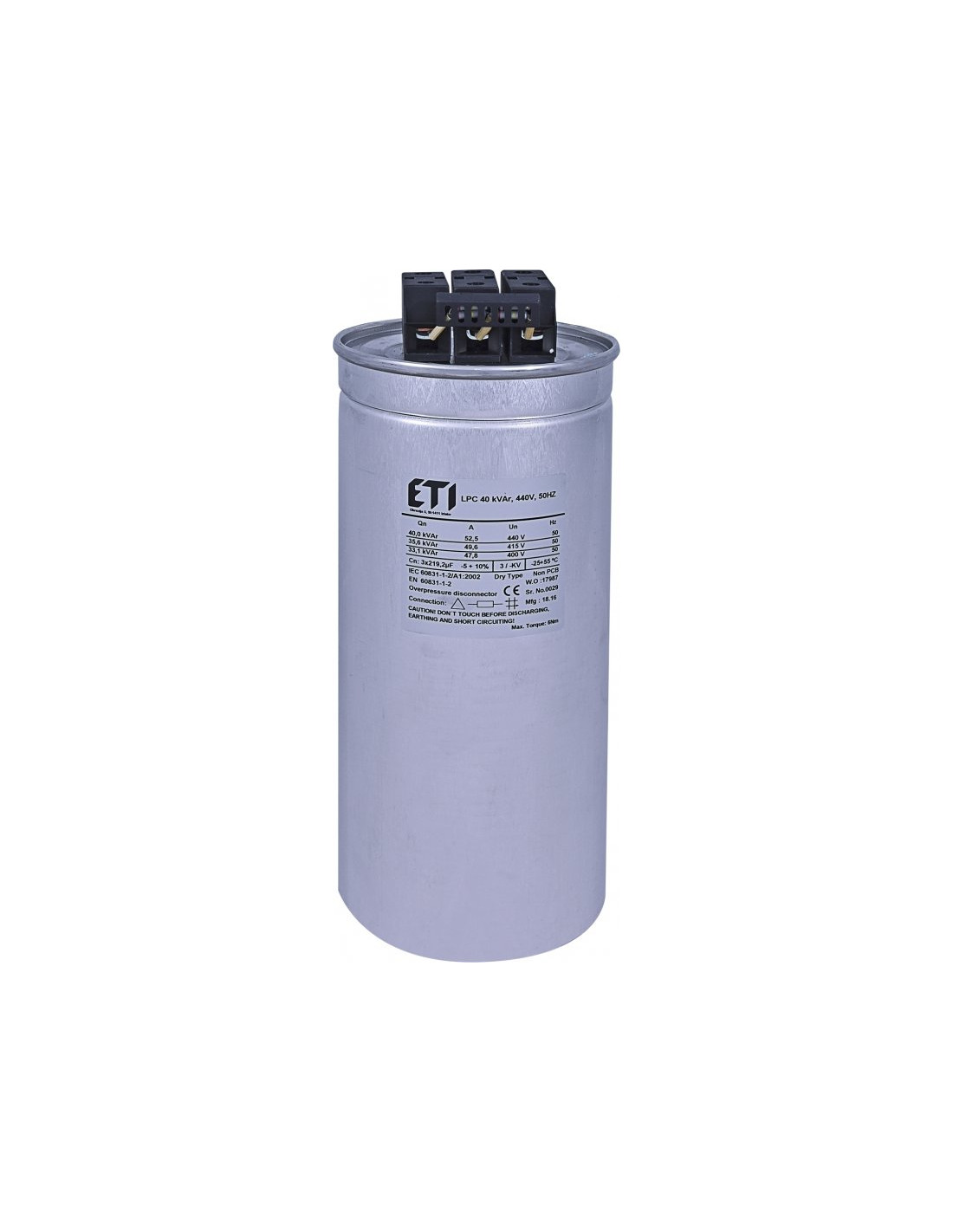 Baterie kondensatorowe Kondensator CP LPC 5kVAr 440V 50HZ 004656713 ETI-POLAM SKU: 0002-00002-12519 324,37 zł 263,72 zł brutto netto DO KOSZYKA