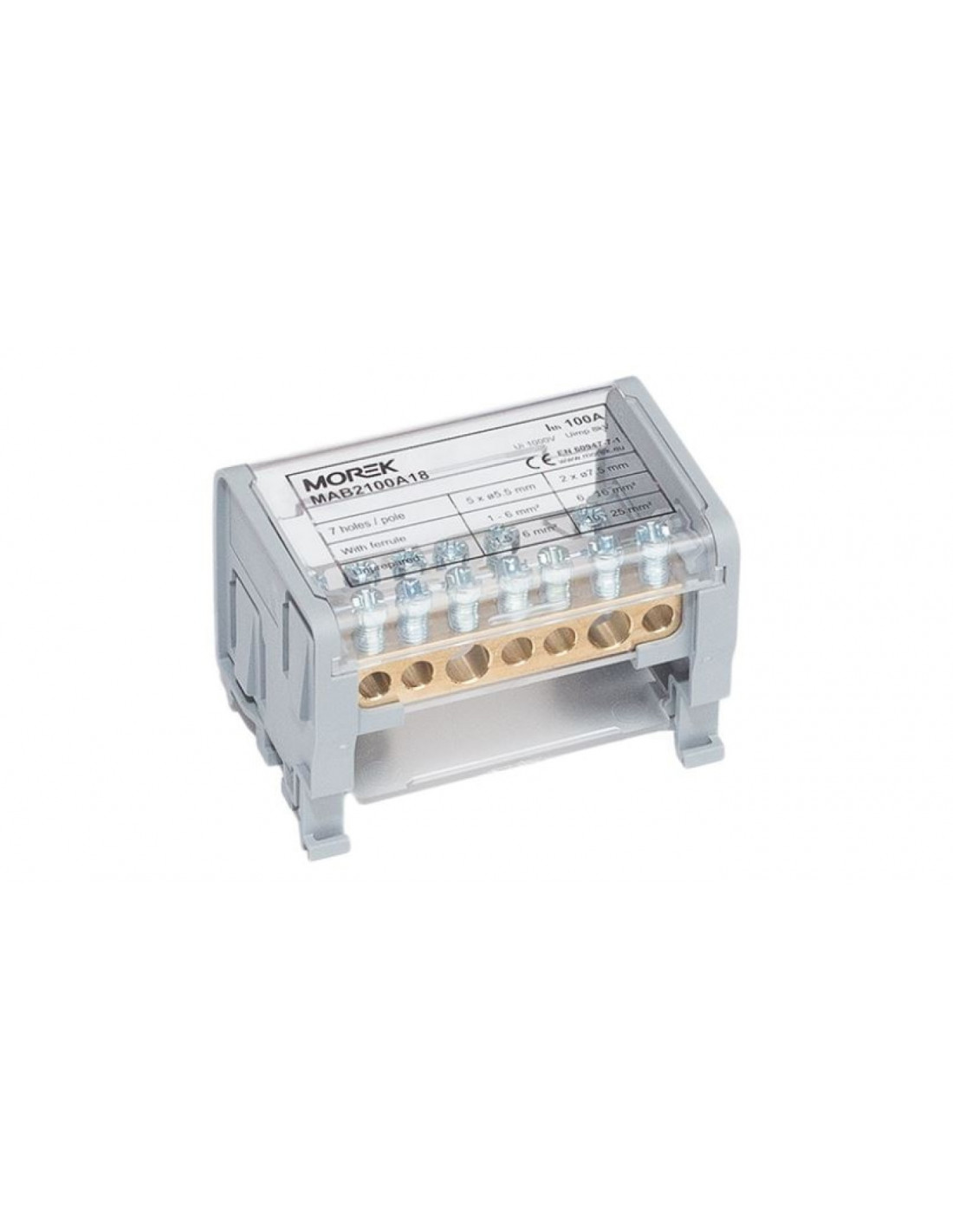 Możliwy jest montaż zarówno na szynach DIN, jak i na płytach montażowych za pomocą śrub. Części przewodzące wykonano z mosiądzu, natomiast śruby zaciskowe ze stali ocynkowanej.