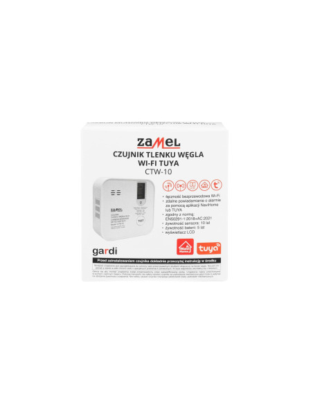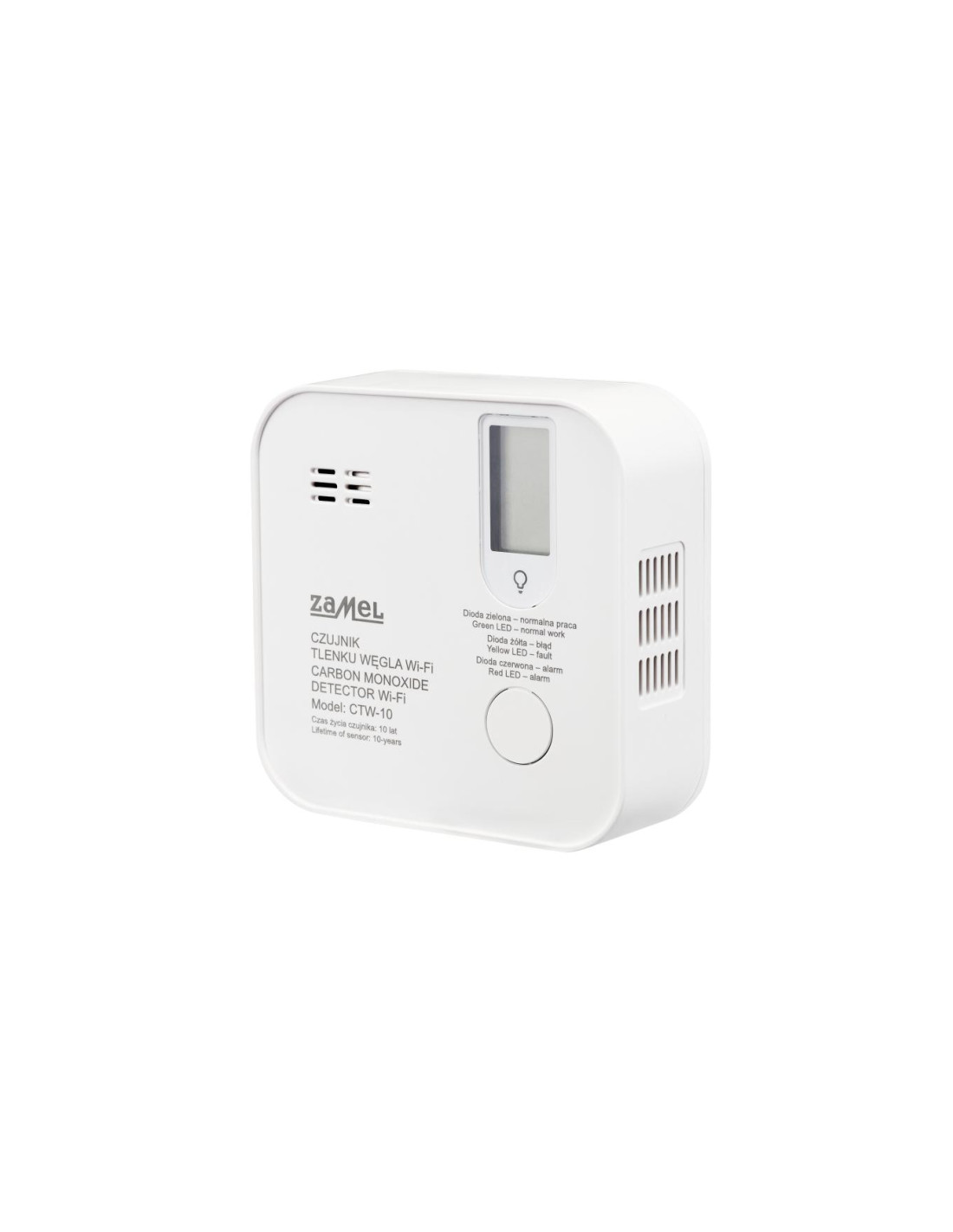 Czujnik CTW-10 służy do ciągłego monitorowania niebezpiecznego stężenia tlenku węgla w powietrzu. W momencie wykrycia zagrożenia czujnik uruchamia głośny sygnał dźwiękowy (min. 85 dB) oraz optyczny w postaci migającej diody. Wyposażony jest w precyzyjny i niezawodny czujnik elektrochemiczny o żywotności 10 lat. Czujnik może pracować niezależnie ale dzięki wbudowanemu Wi-Fi i darmowej aplikacji TUYA można uzyskać zdalny dostęp do czujnika na telefonach i tabletach z systemem Android lub iOS. Dzięki temu w razie wystąpienia alarmu użytkownik otrzyma powiadomienie o tym fakcie na swoim telefonie nawet jeżeli będzie z dala od miejsca instalacji czujnika np. w pracy lub na wczasach na drugim końcu świata (warunek to łączność telefonu z internetem).