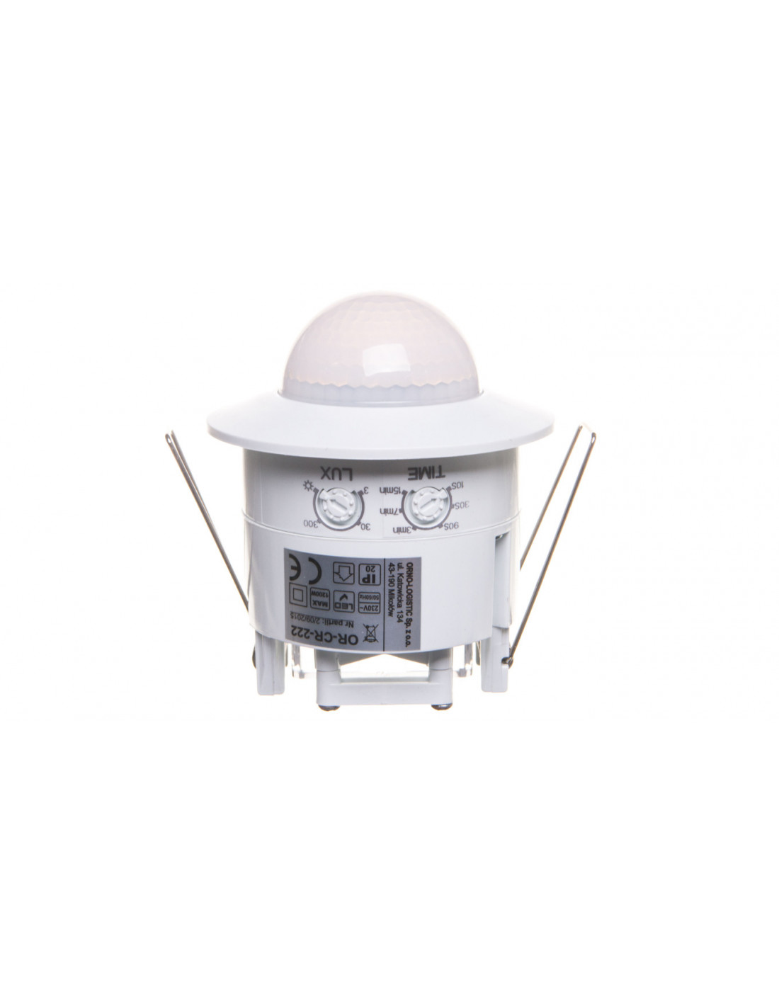 Czujnik ruchu OR-CR-222 pochodzi z oferty katalogowej marki Orno. Należy do profesjonalnych aparatów, stosowanych w celu sterowania oświetleniem lub innymi urządzeniami elektrycznymi. Kontrolę całego obszaru zapewnia potrójny system czujników, współpracujących z detektorami umieszczonymi pod specjalnym kątem. Urządzenie zostało wykonane z białego tworzywa sztucznego, które cechuje się wysoką trwałością. Przystosowano go do współpracy z oświetleniem LED-owym.