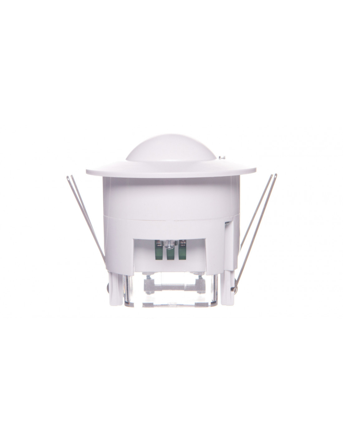 Czujnik ruchu marki Orno został przystosowany do montażu podtynkowego w sufitach podwieszanych i zabudowania w oprawach oświetleniowych. Należy do aktywnych detektorów, które wysyłają fale o częstotliwości 5,8 GHz i odbierają im echo. Czujnik wykrywa zmiany w echu, które może wywołać nawet najmniejszy ruch, który wykrywany jest już w odległości 8 mod produktu. Detektor emituje niewielką moc, świeci z maksymalnym natężeniem 2000 lux i może działać przez maksymalnie 12 min. Produkt został wykonany z trwałego tworzywa sztucznego w kolorze białym. Jego średnica otworu montażowego wynosi 61,5 mm.