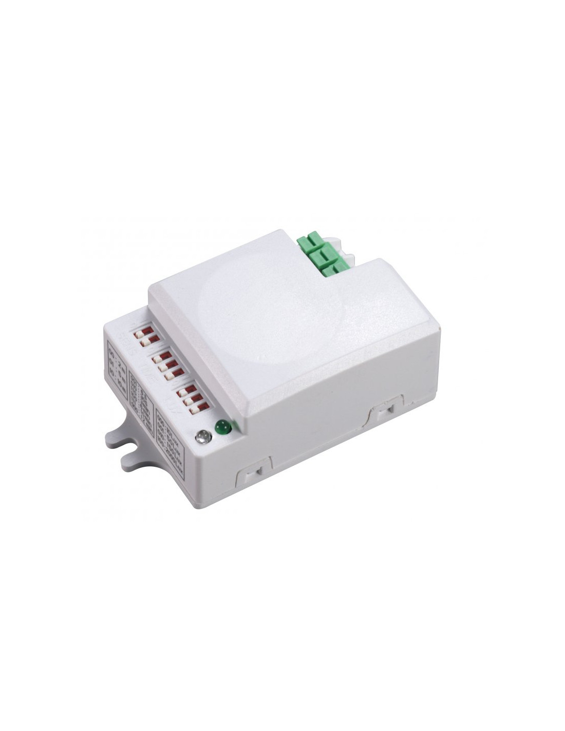 Czujnik ruchu pochodzi z bogatego asortymentu marki Orno. Należy do mikrofalowych, aktywnych czujników ruchu, które wysyłają fale elektromagnetyczne o wysokiej częstotliwości i odbierają ich echo. Produkt wykrywa zmiany w echu, które są spowodowane nawet najmniejszym ruchem w promieniu do 8 m. Produkt posiada wbudowany czujnik zmierzchowy i przekaźnik czasowy. Przeznaczono go do wbudowania w oprawy oświetleniowe.