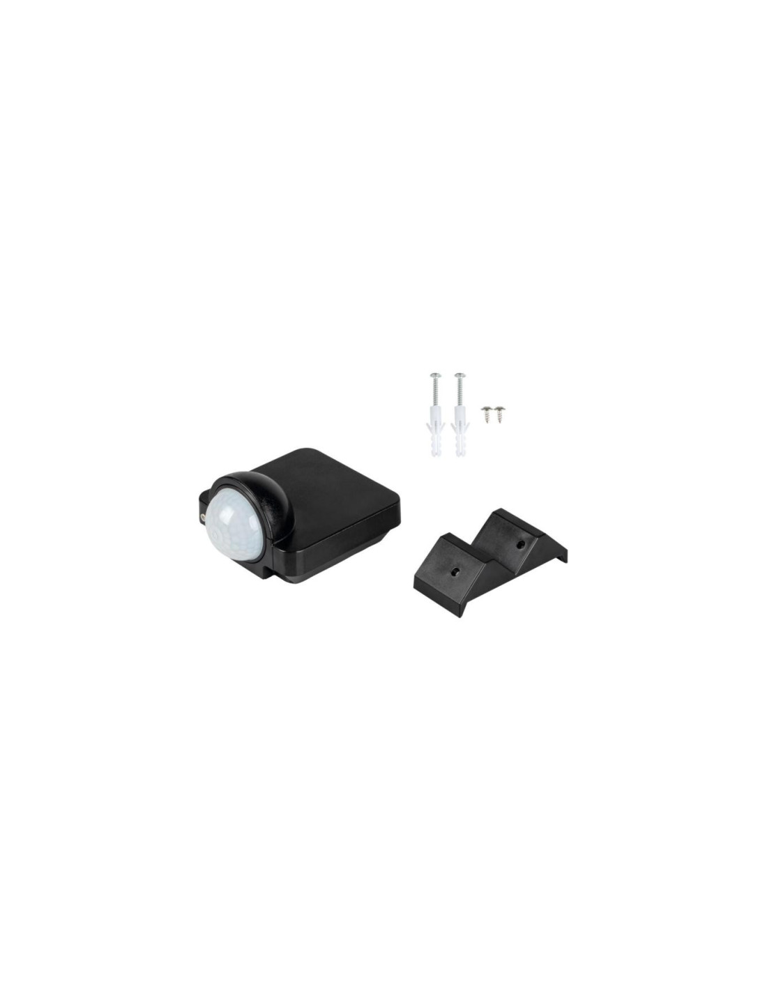 Czujnik ruchu PIR, Długość [mm]: 76, Szerokość [mm]: 58, Wysokość [mm]: 110, Czas działania czujnika [sekunda-minuta]: 10-15, Częstotliwość znamionowa [Hz]: 50, Kąt działania czujnika [°]: H360, Klasa ochronności przed porażeniem elektrycznym: II, Kolor: czarny, Maksymalny czas działania [min]: 15, Materiał: tworzywo sztuczne, Miejsce montażu: do nadbudowania na ścianie, Miejsce zastosowania: wewnątrz i na zewnątrz, Mikroprzerwa pomiędzy stykami przekaźnika: 1, Minimalny czas działania [s]: 10, Moc maksymalna [VA]: 1200, Napięcie znamionowe [V]: 220-240 AC, Nastawa poziomu natężenia oświetlenia, przy którym czujnik wykrywa ruch [lx]: 3-2000, Rodzaj czujnika: PIR, Rodzaj przyłącza: kostka śrubowa, Stopień IP: 54, Zakres przekrojów stosowanych przewodów [mm2]: 0,75÷1,5, Zakres temperatury otoczenia, na którą może być narażony wyrób [°C]: -20+40, Zasięg czujnika [m]: max 8.