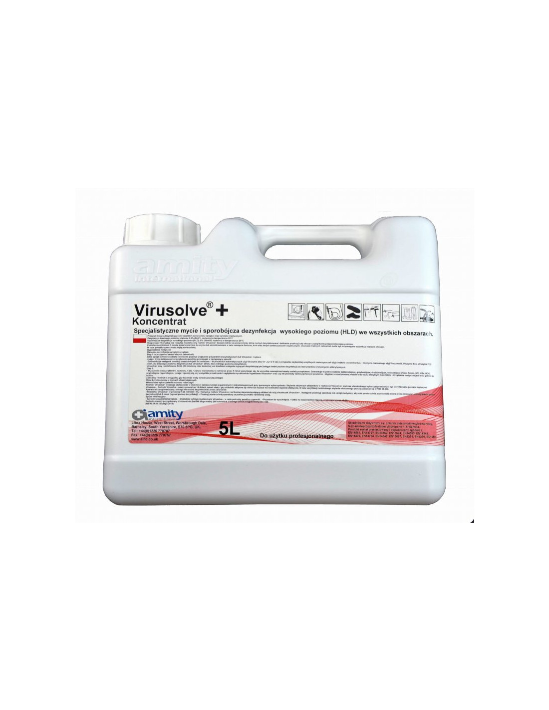 Virusolve+ koncentrat jest opatentowanym płynnym preparatem do mycia i dezynfekcji wysokiego poziomu. Kombinacja składników aktywnych, w tym poliaminy nie zawiera toksycznych aldehydów, związków uwalniających chlor, alkoholi, kwasu nadoctowego i nie wymaga aktywatora. Virusolve+ zapobiega ryzyku przenoszenia zakażeń krzyżowych z powierzchni i wyrobów medycznych, powodowanych przez spory, prątki, bakterie, wirusy (osłonkowe i bezosłonkowe) oraz grzyby. Virusolve+ nie tylko hamuje rozwój drobnoustrojów, ale też niszczy ich materiał genetyczny. Produkt jest bezpieczny dla metali, szkła i tworzyw sztucznych.