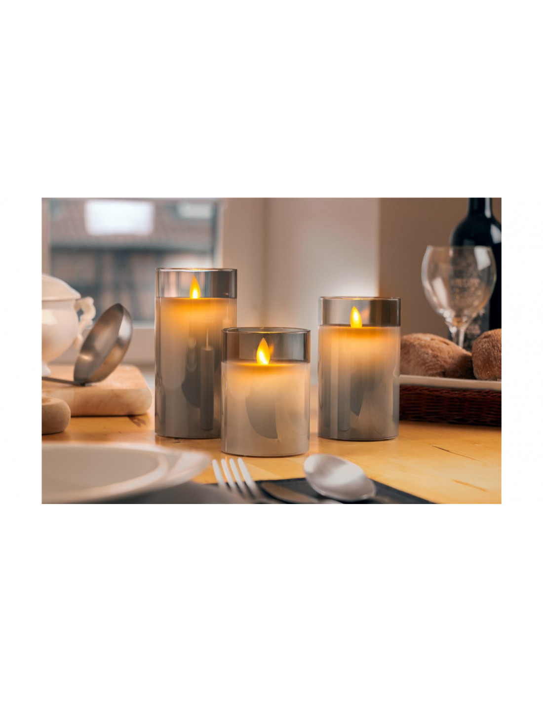 Świeca LED z prawdziwego wosku w szkle, 7,5 x 12,5 cm, szara 60371