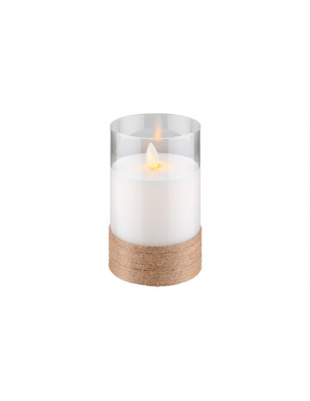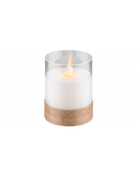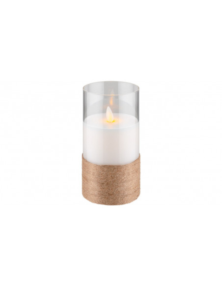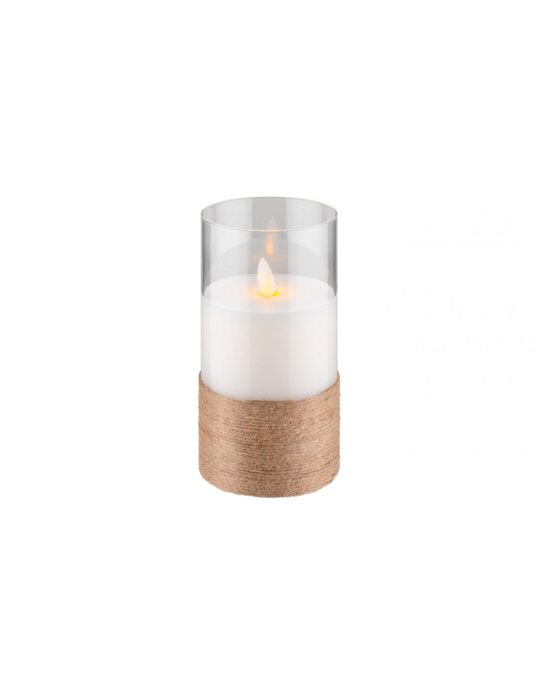 realistyczny efekt migoczącego płomienia dzięki wahającemu się knotowi i naturalnym materiałom zapewnia rustykalną elegancję