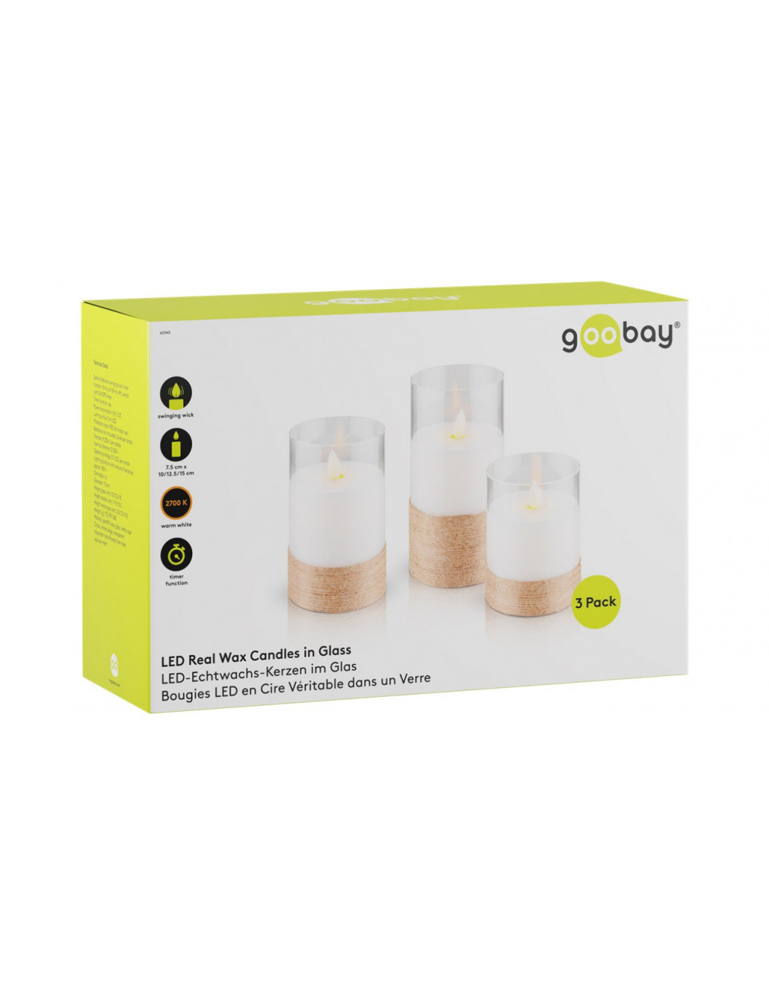 Zestaw 3 świec LED z prawdziwego wosku w szkle, białe