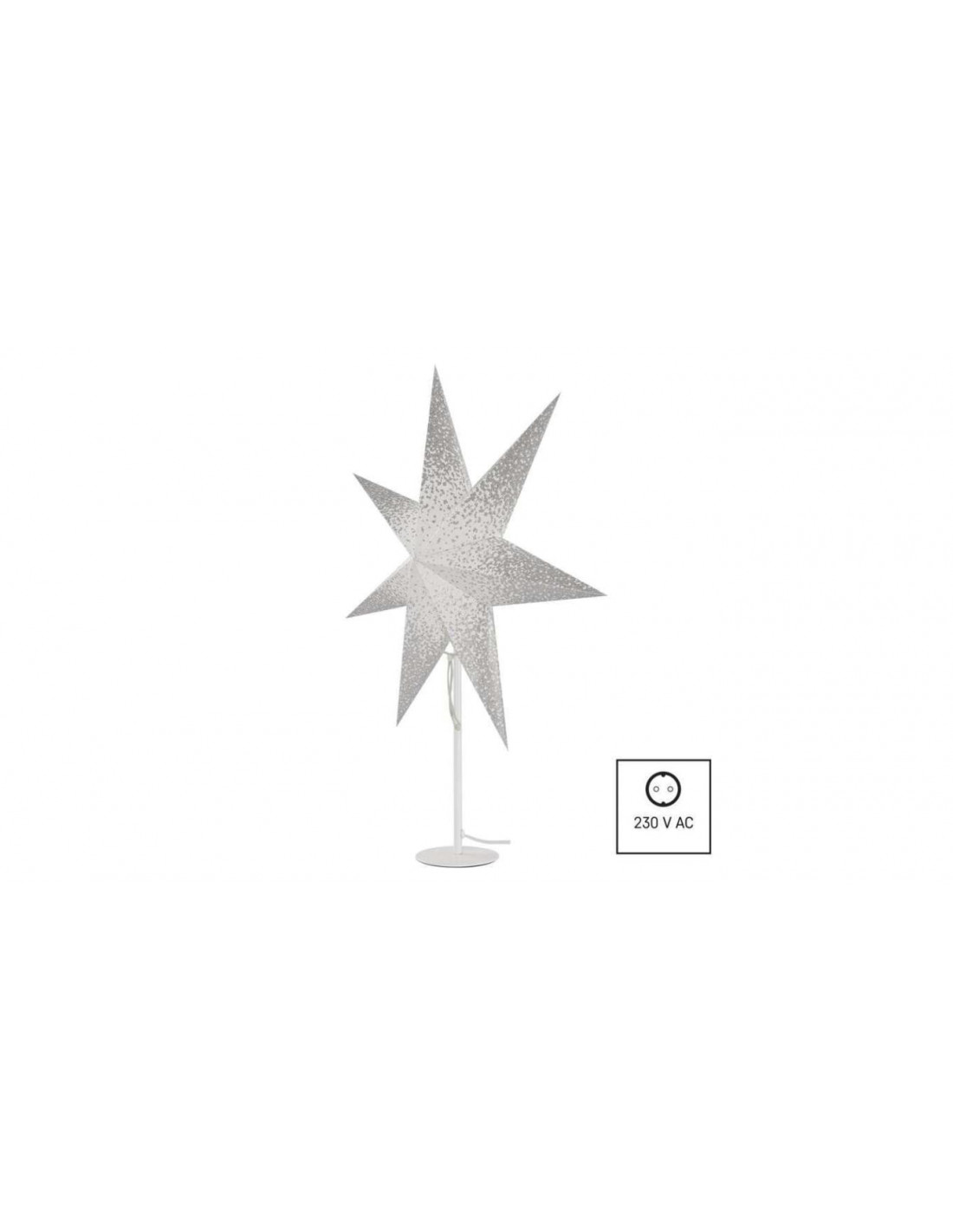 produkt: gwiazda, wymiary: 45 × 67 cm, zastosowanie: wewnętrzne, timer: nie, pilot zdalnego sterowania: nie, typ zasilania: sieć, źródło światła: E14, długość przewodu: 1,6 m, kolor przewodów: biały, moc: 25 W max., napięcie wejściowe: 230 V AC, stopień ochrony: IP20, żywotność: 10 000 godzin, materiał: papier, okres gwarancyjny: 2 lata, opakowanie: 1 szt., pudełko