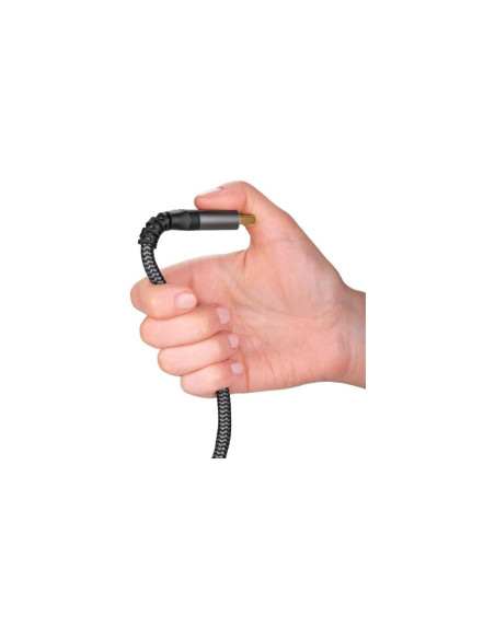 Elastyczny kabel premium z wąskimi metalowymi wtyczkami, ochroną przed zginaniem i dopasowanym kolorystycznie kablem tekstylnym