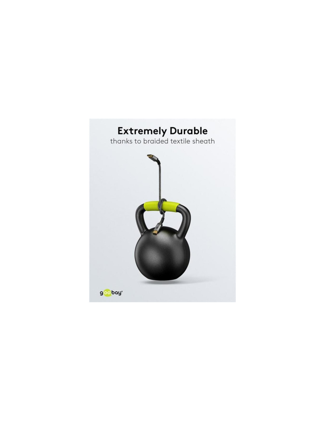 Elastyczny kabel premium z wąskimi metalowymi wtyczkami, ochroną przed zginaniem i dopasowanym kolorystycznie kablem tekstylnym