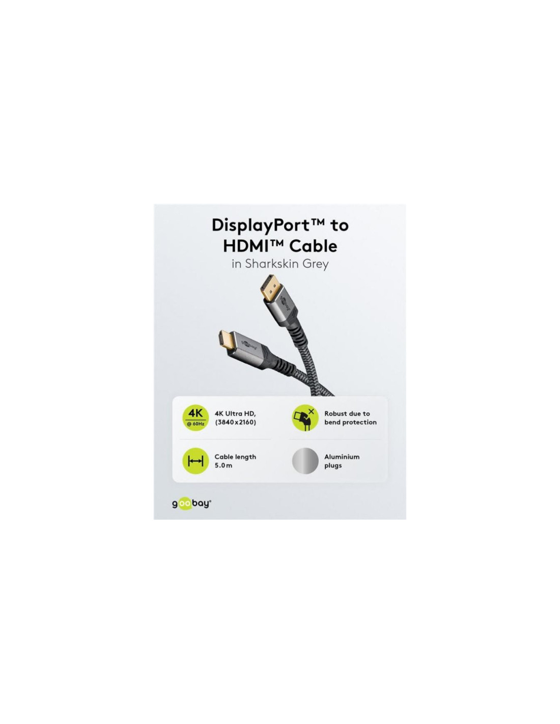 Seria Goobay Plus z wtyczkami w smukłej, eleganckiej metalowej obudowie w kolorze Sharkskin Grey. Wygodne rozwiązanie do podłączenia źródła DisplayPort™ do telewizora lub monitora ze złączem HDMI™ - dla ostrego jak brzytwa obrazu w rozdzielczości do 4K i wciągającego dźwięku za pośrednictwem urządzeń bez własnego złącza DisplayPort™.