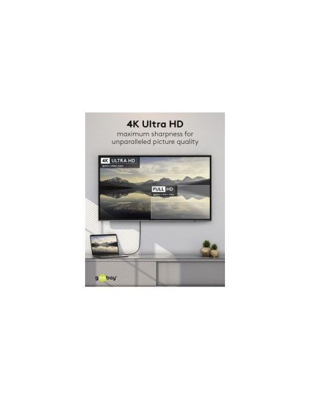 Kabel zapewnia rozdzielczość Ultra HD do 4K @ 50/60 Hz i szybkość przesyłania danych do 18 Gbit/s z DisplayPort™ 1.2 i HDMI™ 2.0