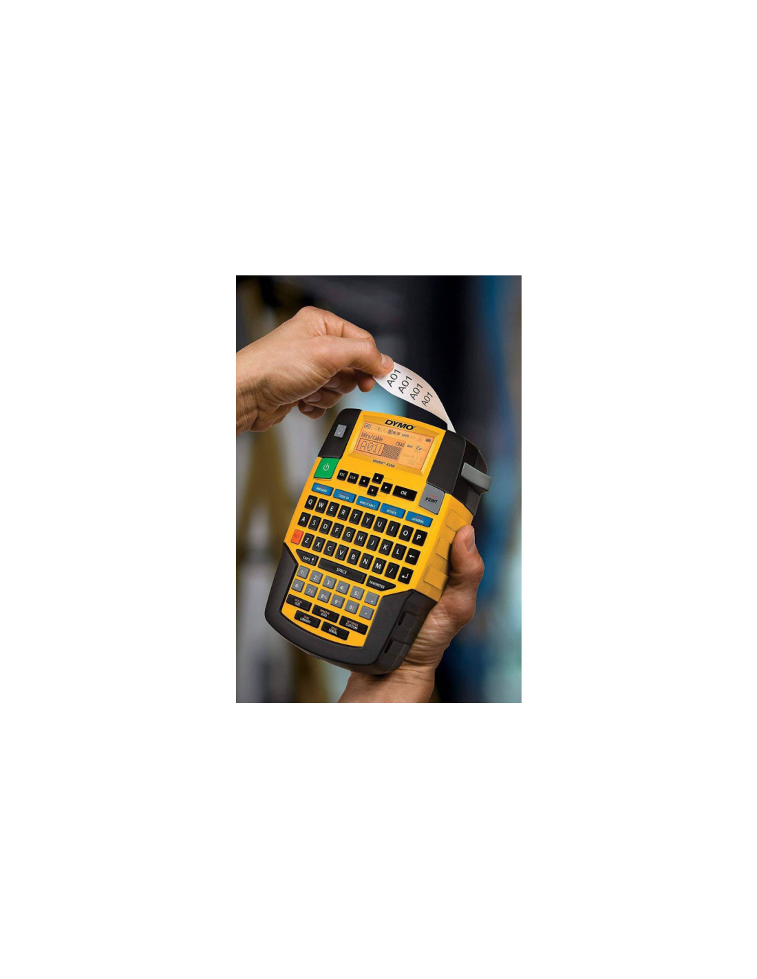 Zasilana 6 bateriami AA (niedołączone) lub opcjonalnym, szybko się ładującym akumulatorem litowo-jonowym. W urządzeniach DYMO zaleca się używanie wyłącznie baterii alkalicznych Duracell.