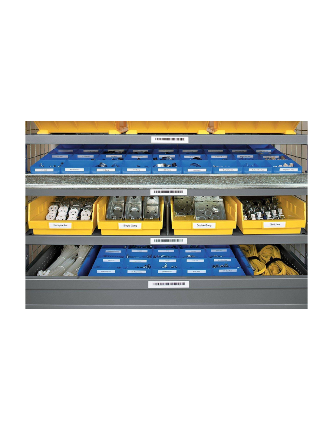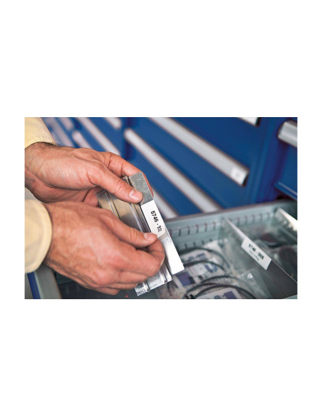 Używa łatwych w rozdzielaniu etykiet RHINO z silnym klejem, wykonanych z 5 materiałów