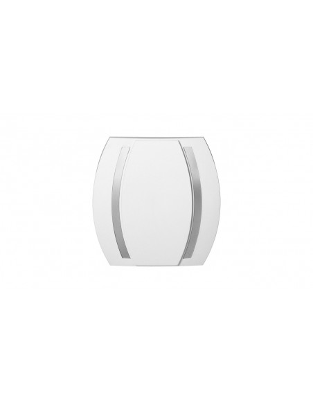 Przewodowy dzwonek elektromechaniczny, dwa dźwięki BIM-BAM. Obudowa dzwonka jest biała, a elementy dekoracyjne są w kolorze srebrnym.