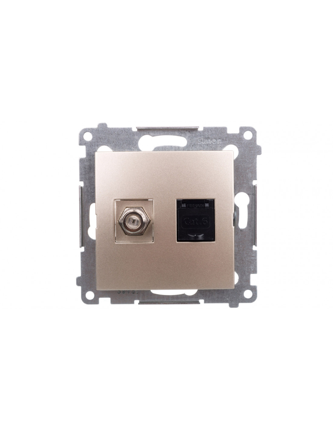 Simon 54 Gniazdo antenowe typu F+ komputerowe RJ45 kat.6 złoty mat DASFRJ45.01/44