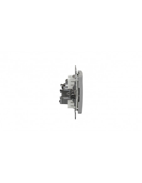 Układ zacisków gniazda w jednej linii ułatwia ułożenie przewodów w puszce (zmniejszenie efektu prężenia przewodów).