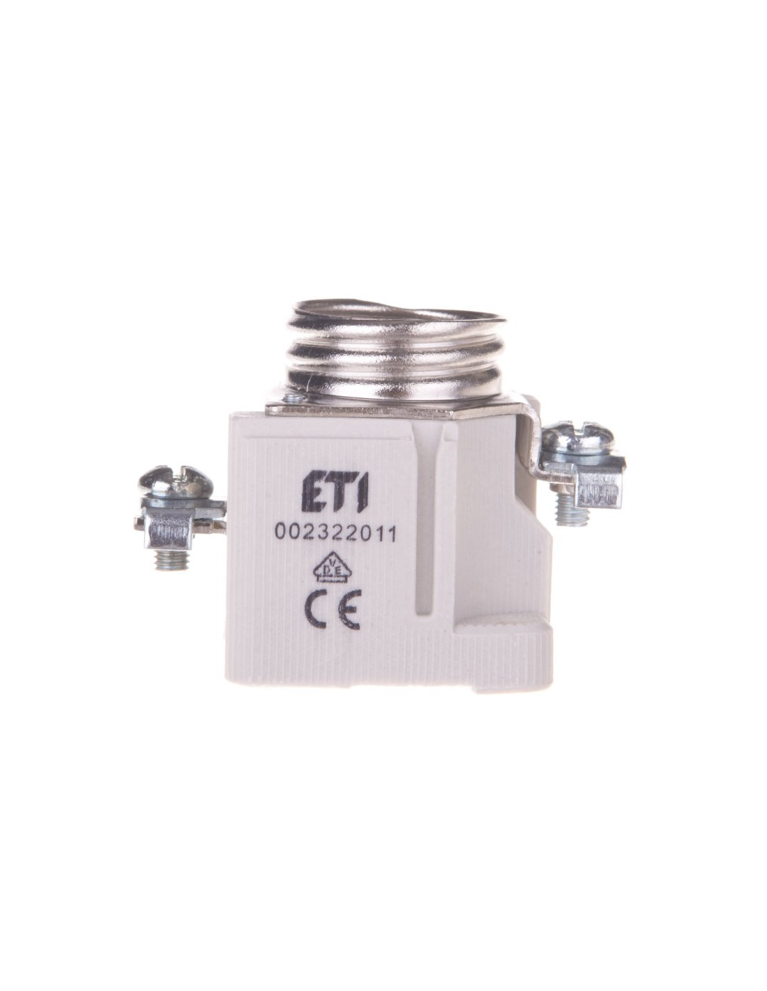 Prezentowane gniazdo bezpiecznikowe zostało przeznaczone do montażu na szynę. Sposobem instalacji polecanym przez specjalistów jest mocowanie śrubowe. Gniazdo jest modelem wkręcanym. Produkt został dodatkowo wyposażony w jeden biegun. W trakcie, zarówno jego montażu, jak i późniejszego użytkowania, warto zwrócić szczególną uwagę na parametry elektryczne gniazda. Powyższy model pracuje bowiem przy prądzie znamionowym, którego wartość jest równa 25 A. Natomiast wartość napięcia znamionowego wynosi w tym przypadku 500 V. Gniazdo jest modelem z osłoną. Prezentowany model jest dostępny w rozmiarze DII. Gniazdo zostało wyprodukowane przez znany oraz ceniony na całym świecie koncern ETI POLAM i jest częścią jednej z jego popularnych linii - nowoczesnej serii D. Wspomniana marka pracuje na zaufanie swoich klientów już od 1997 roku. Obecnie marka może pochwalić się prestiżowymi, europejskimi certyfikatami jakości, takimi jak na przykład: BBJ, VDE, NEMKO, FIMKO, DEMKO, a cała produkcja spełnia wymogi ISO 9001 i ISO 14000.