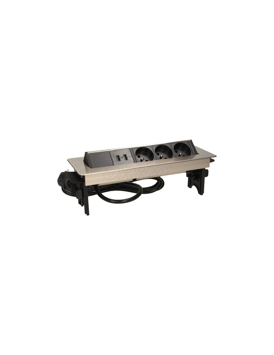Gniazdo wpuszczane w blat 3x250V w niklowanej obudowie z ładowarką 2xUSB i przewodem 1,8m OR-AE-1364