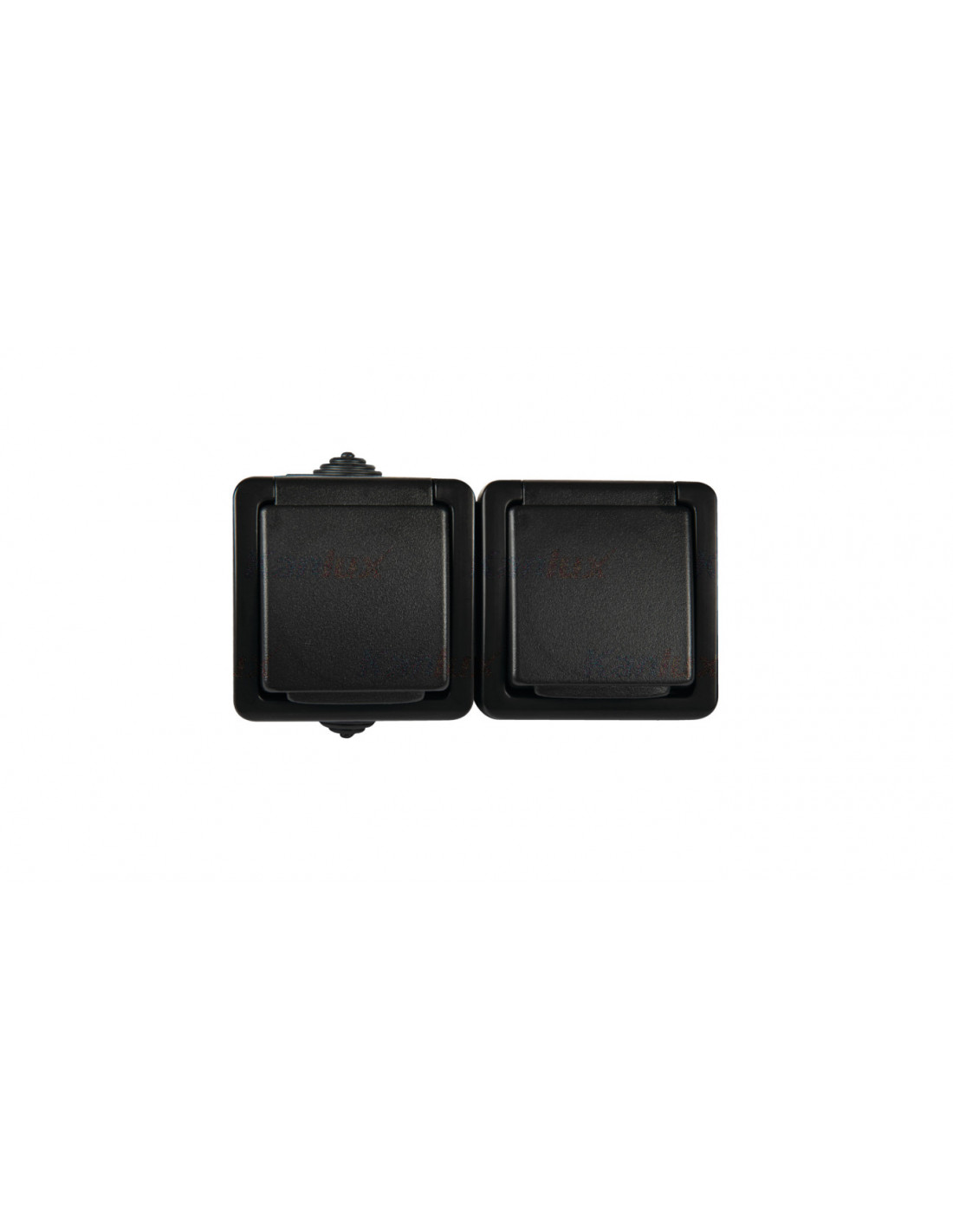 Gniazdo zasilające francuskie podwójne z ochroną styków natynkowe, IP54, kolor czarny.