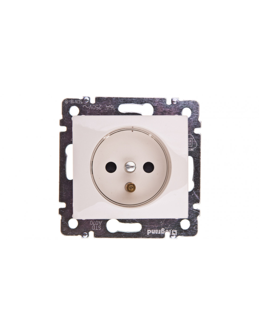 Gniazdo pojedyncze wytworzono z bardzo trwałego tworzywa termoplastycznego w kolorze kremowym. Wykończenie powierzchni tego gniazda jest błyszczące. Produkt nie posiada nadruku. Model posiada bolec uziemiający. Jego napięcie znamionowe dochodzi do 250 V, natomiast prąd znamionowy wynosi 16 A. Gniazdo nie ma obrotowej wkładki centralnej i bezpiecznika miniaturowego. Gniazdo nie posiada specjalnego zasilania. Producent zalecił wykonanie montażu podtynkowego przy pomocy pazurków i śruby. IP20, to stopień ochrony jaki posiada. Świadczy on o odporności na ciała obce o średnicy 12,5 mm. Gniazdo nie jest chronione przed działaniem wody i wilgoci, dlatego nie powinno być stosowane na zewnątrz budynków. Jest zabezpieczone przed dziećmi. Aparat nie posiada podświetlenia, nie ma również ochrony przeciwprzepięciowej. LEGRAND działa od 1860 roku i od tej pory bardzo się rozwinął stając się jednym z największych specjalistów w swojej branży. Na całym świecie zatrudnia około 33 000 osób. jest liderem na kluczowych rynkach świata: we Francji, Hiszpanii, Wielkiej Brytanii, Polsce, i innych. Aparatura, którą produkuje LEGRAND, spełnia wszelkie normy bezpieczeństwa. Znajdzie zastosowanie zarówno w nowoczesnym biurze, jak i standardowym zakładzie przemysłowym.