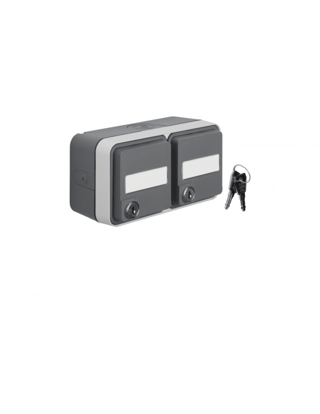 Berker W.1 Gniazdo pojedyncze SCHUKO na klucz z p. opisowym rózne zamki kompletne IP55 szary 47393505