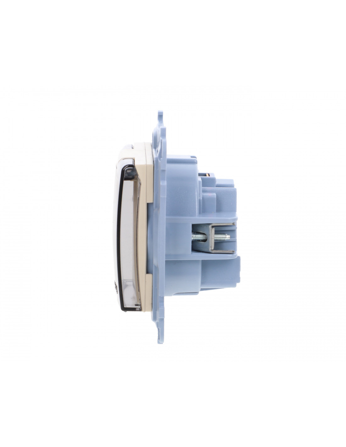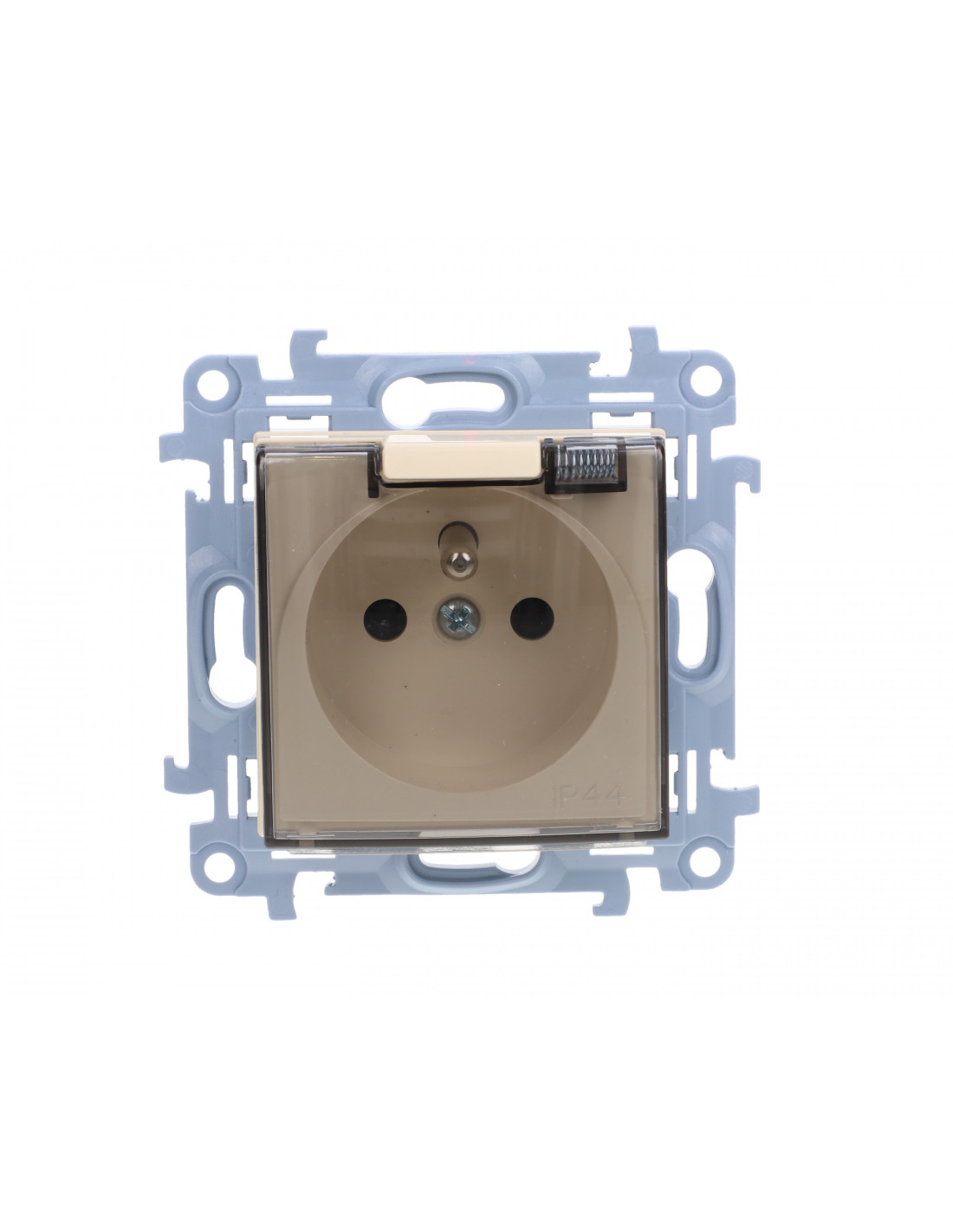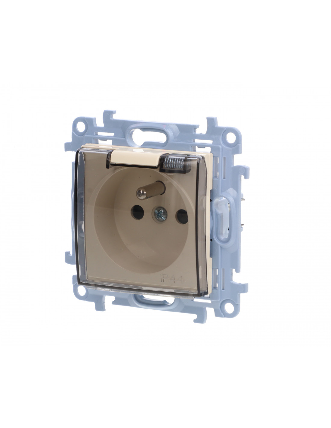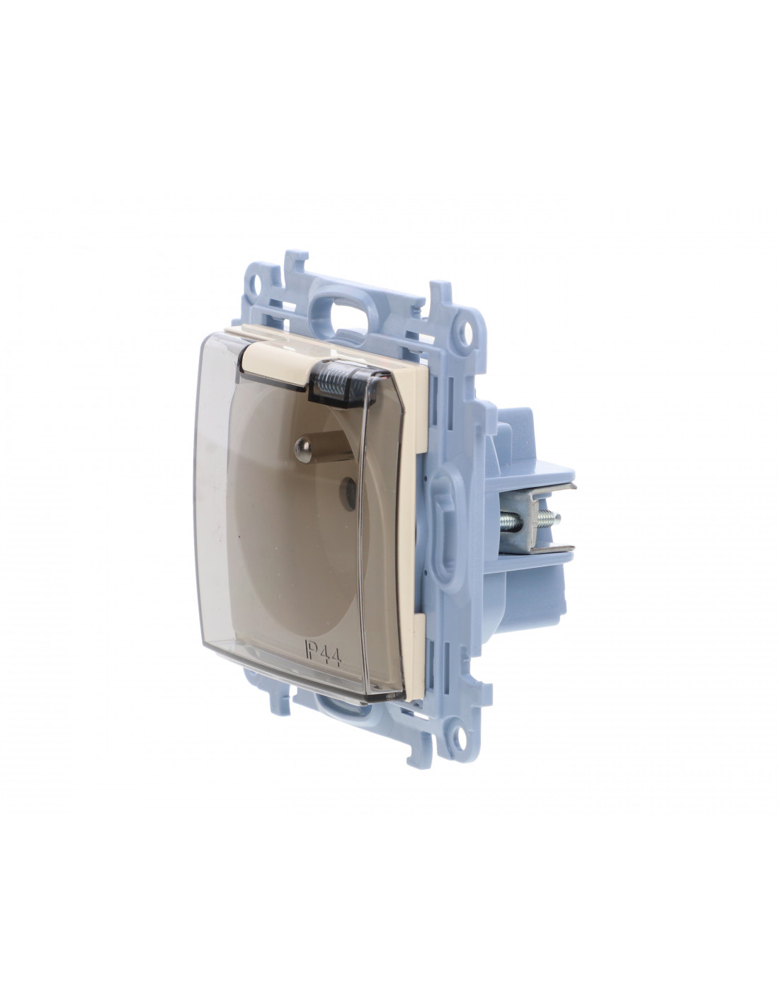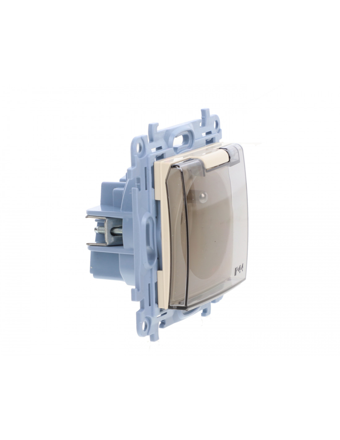 Simon 10 Gniazdo pojedyncze IP44 z uszczelką z przesłonami torów prądowych klapka transp. kremowy, szybkozłącza, CGZ1BCZ.01/41A