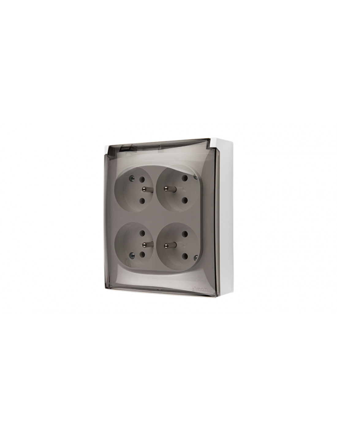 Gniazdo wtyczkowe poczwórne z uziemieniem kolor biały 16A klapka w kolorze białym Hermetyczny osprzęt natynkowy IP44 Poznaj bryzgoszczelne gniazdo z serii Simon Aquaclick, stworzone z myślą o bezpieczeństwie i wygodzie użytkowania. Szybki montaż, łatwe mocowanie przewodów. Sprawdzi się idealnie w domu, w warsztacie czy nawet na zewnątrz. Szczelna konstrukcja nie przepuszcza drobinek kurzu ani chlapiącej wody. Prąd znamionowy 16 A Stopień ochrony IP IP44 Napięcie znamionowe 250 V Zaciski zaciski śrubowe Pozostałe dane techniczne produktu Podświetlenie: nie Liczba modulów: 1 Zakres częstotliwości: 50‑60 Hz Liczba jednostek: 4 Przesłony otworów prądowych: nie Rodzaj materiału: tworzywo sztuczne, ABS, PC, bezhalogenowe Seria Simon Aquaclick łączy w sobie estetyczny wygląd i ochronę przed czynnikami zewnętrznymi. Stopień ochrony IP44 gwarantuje poczucie bezpieczeństwa w miejscach, gdzie łączniki i gniazda mogą mieć kontakt z wodą czy pyłem – w łazience, na elewacji czy w warsztacie. Łatwe i intuicyjne mocowanie oraz estetyczna konstrukcja sprawiają, że mogą być używane przez każdego. Wygodne użytkowanie Maksymalnie odchylona klapka blokuje się w górnej pozycji ułatwiając podłączenie urządzeń. Niezawodne mocowanie Zaczepy mocujące umieszczone w centralnej części produktu pewnie trzymają pokrywę niezależnie od typu podłoża. Miejsce na przewody Komfortowe przeprowadzenie przewodów dzięki dużej przestrzeni wewnątrz. Łatwe podłączanie przewodów Oszczędzające czas i ułatwiające mocowanie przewodów zaciski na szybkozłącza w gniazdach pojedynczych. System CLICK Szybkie zatrzaskiwanie oraz zwalnianie zatrzasków, umożliwiające zakładanie i zdejmowanie pokrywy w dowolnej chwili Wygodne użytkowanie Maksymalnie odchylona klapka blokuje się w górnej pozycji ułatwiając podłączenie urządzeń.