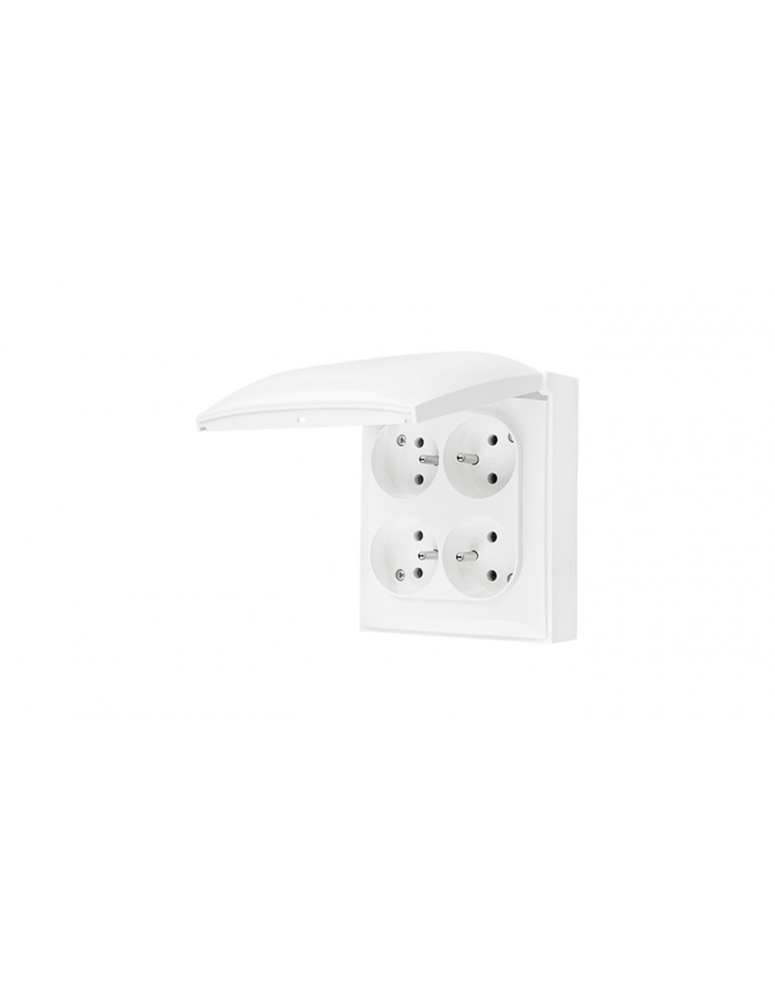 Gniazdo wtyczkowe poczwórne z uziemieniem kolor biały 16A klapka w kolorze białym Hermetyczny osprzęt natynkowy IP44 Poznaj bryzgoszczelne gniazdo z serii Simon Aquaclick, stworzone z myślą o bezpieczeństwie i wygodzie użytkowania. Szybki montaż, łatwe mocowanie przewodów. Sprawdzi się idealnie w domu, w warsztacie czy nawet na zewnątrz. Szczelna konstrukcja nie przepuszcza drobinek kurzu ani chlapiącej wody. Prąd znamionowy 16 A Stopień ochrony IP IP44 Napięcie znamionowe 250 V Zaciski zaciski śrubowe Pozostałe dane techniczne produktu Podświetlenie: nie Liczba modulów: 1 Zakres częstotliwości: 50‑60 Hz Liczba jednostek: 4 Przesłony otworów prądowych: tak Rodzaj materiału: tworzywo sztuczne, ABS, PC, bezhalogenowe Seria Simon Aquaclick łączy w sobie estetyczny wygląd i ochronę przed czynnikami zewnętrznymi. Stopień ochrony IP44 gwarantuje poczucie bezpieczeństwa w miejscach, gdzie łączniki i gniazda mogą mieć kontakt z wodą czy pyłem – w łazience, na elewacji czy w warsztacie. Łatwe i intuicyjne mocowanie oraz estetyczna konstrukcja sprawiają, że mogą być używane przez każdego. Wygodne użytkowanie Maksymalnie odchylona klapka blokuje się w górnej pozycji ułatwiając podłączenie urządzeń. Niezawodne mocowanie Zaczepy mocujące umieszczone w centralnej części produktu pewnie trzymają pokrywę niezależnie od typu podłoża. Miejsce na przewody Komfortowe przeprowadzenie przewodów dzięki dużej przestrzeni wewnątrz. Łatwe podłączanie przewodów Oszczędzające czas i ułatwiające mocowanie przewodów zaciski na szybkozłącza w gniazdach pojedynczych. System CLICK Szybkie zatrzaskiwanie oraz zwalnianie zatrzasków, umożliwiające zakładanie i zdejmowanie pokrywy w dowolnej chwili Wygodne użytkowanie Maksymalnie odchylona klapka blokuje się w górnej pozycji ułatwiając podłączenie urządzeń.