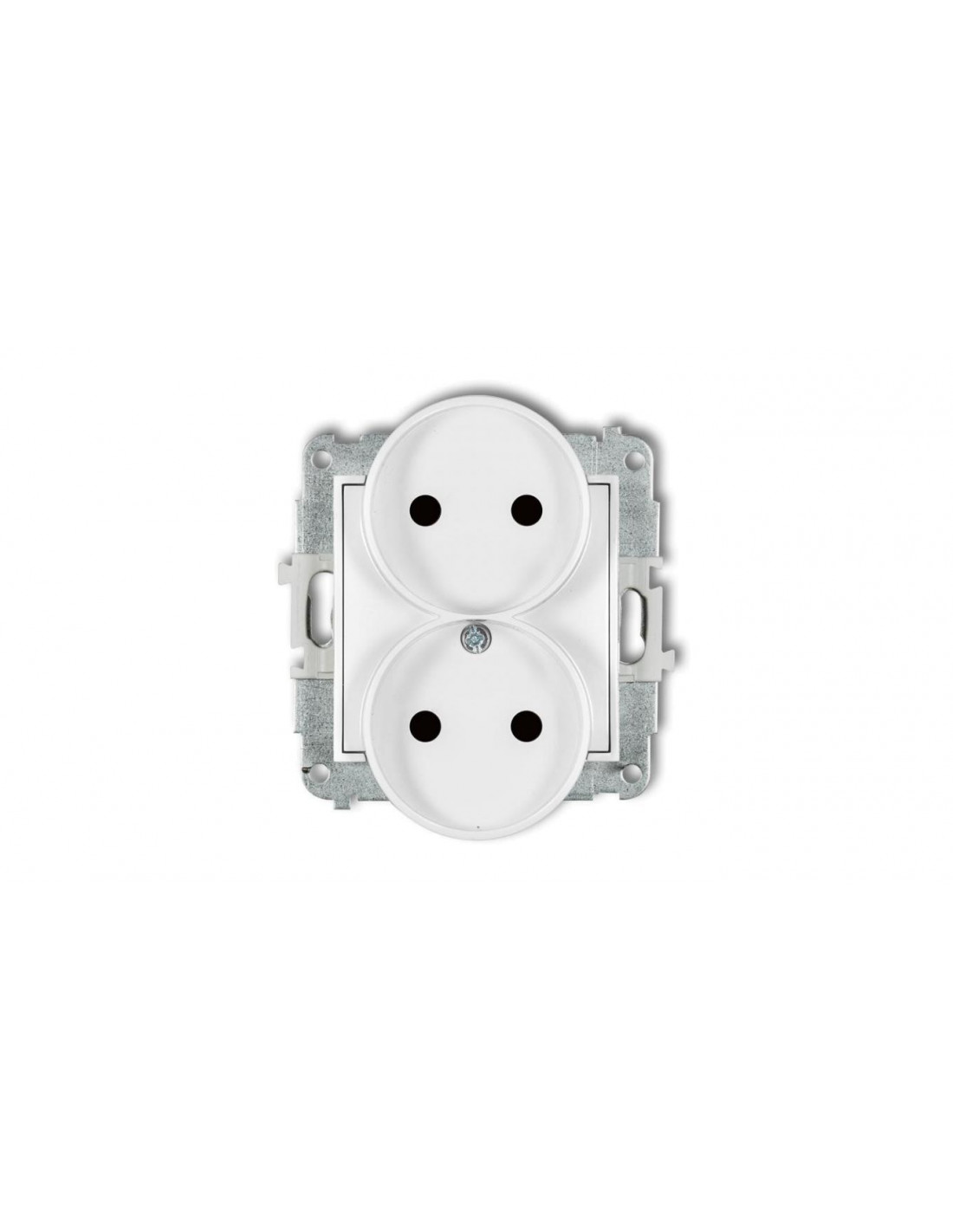 MINI Mechanizm gniazda podwójnego do ramki bez uziemienia 2x2P (przesłony torów prądowych) biały mat 25MGPR-2p