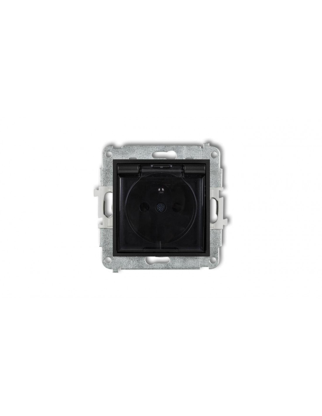 ICON Mechanizm gniazda bryzgoszczelnego z uziemieniem 2P+Z (klapka dymna, przesłony torów prądowych) czarny mat 12IGPB-1zdp to typ gniazda elektrycznego oferowany przez firmę ICON. Ten model jest zaprojektowany z myślą o ochronie przed wilgocią i wodą, co sugeruje termin "bryzgoszczelne".