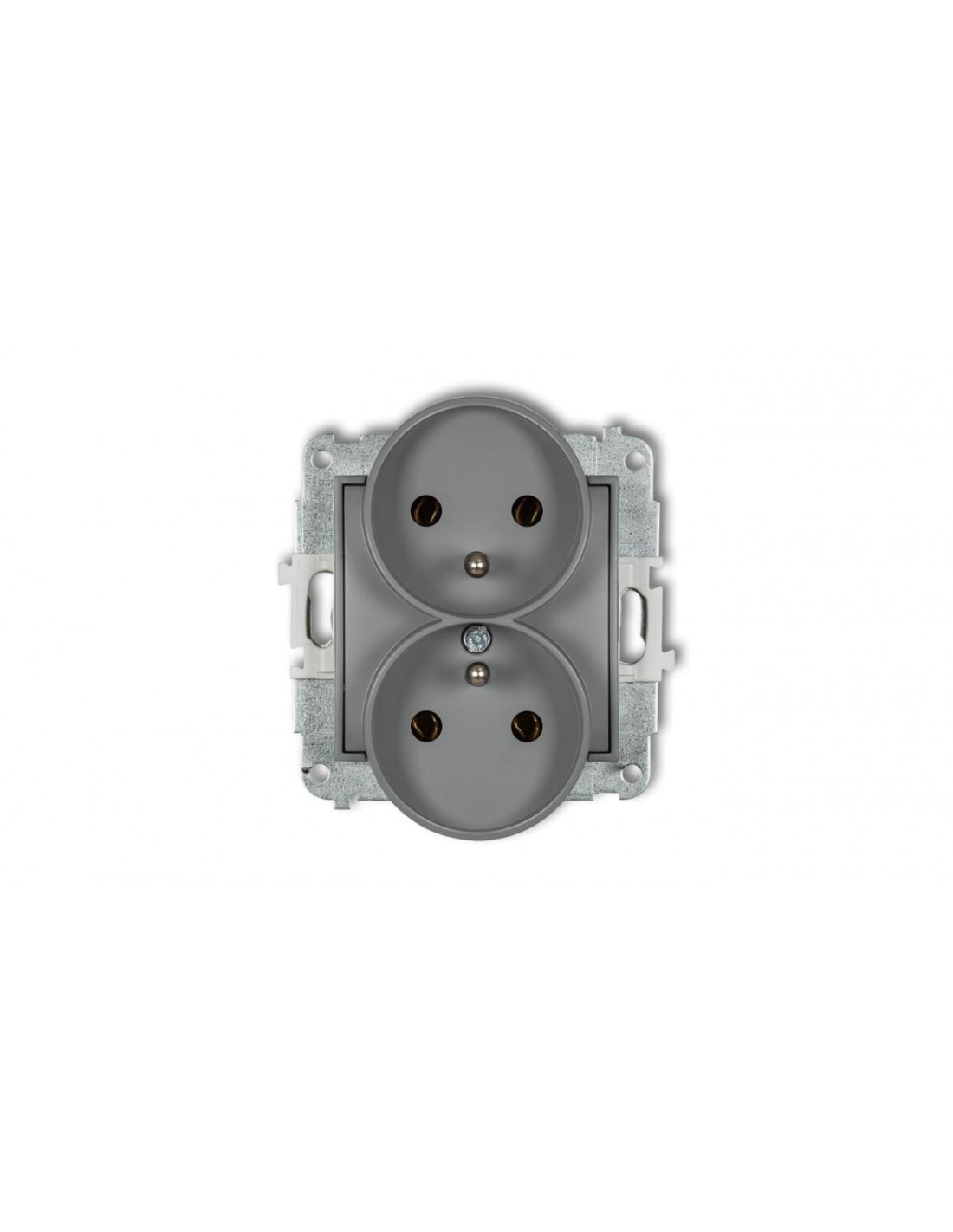 ICON Mechanizm gniazda podwójnego do ramki z uziemieniem 2x(2P+Z) (bez przesłon torów prądowych) szary mat 27IGPR-2z