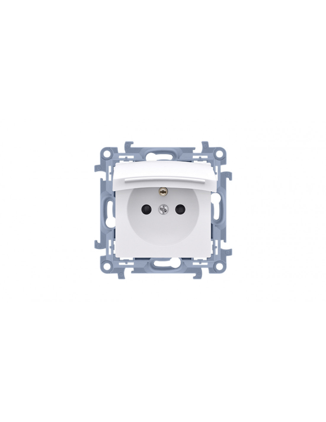 Simon 10 Gniazdo pojedyncze IP44 z przesłonami torów prąd. z uszczelką klapka w kolorze pokrywy szybkozłącza biały CGZ1BCZ.01/11