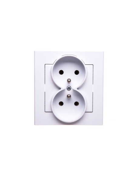 Gniazdo podwójne z uziemieniem kompletne z ramką biały mat GP-2RZ/75