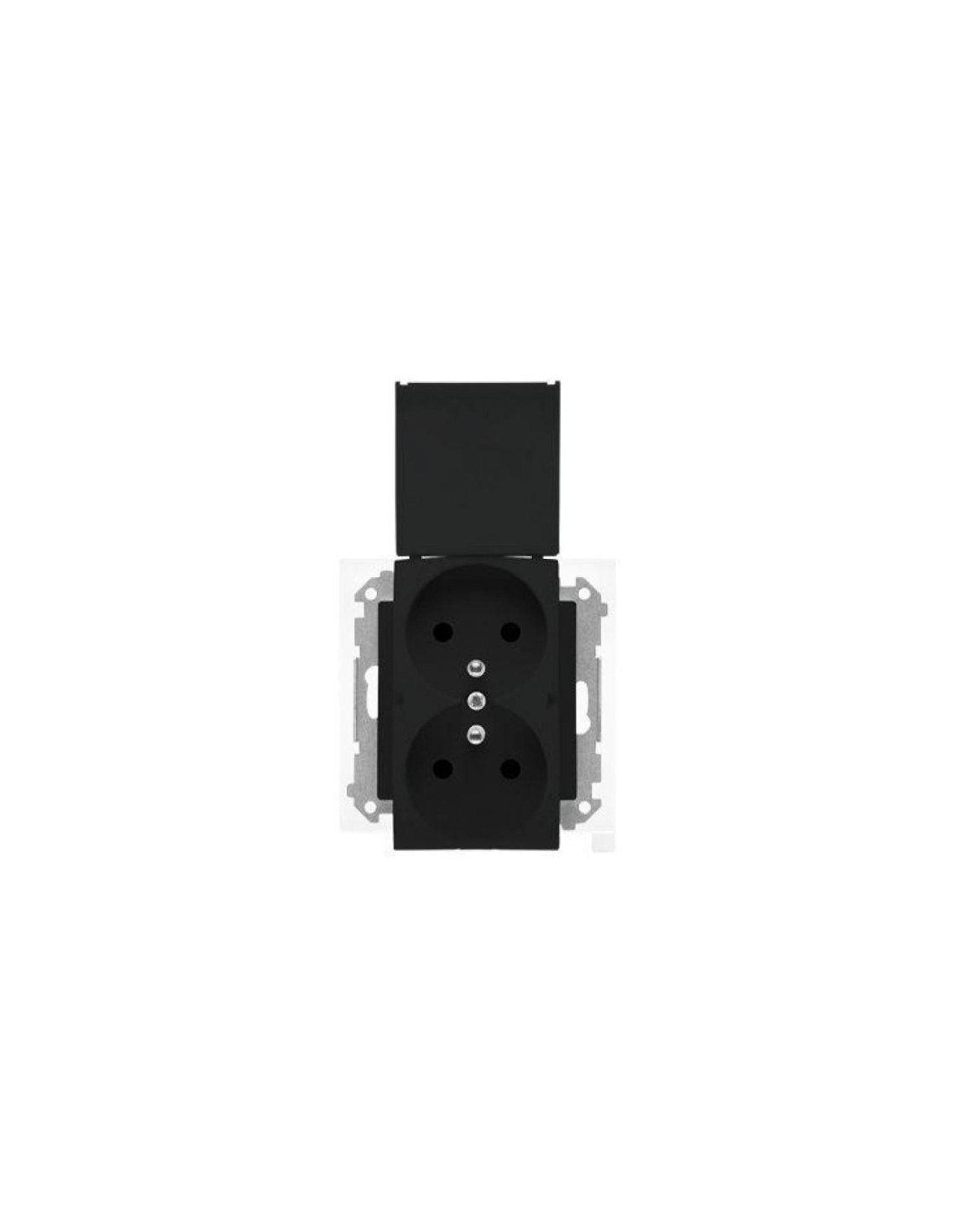 Simon 55 Gniazdo podwójne do wersji IP44 z uszczelką (moduł), szybkozłącza. Klapka w kolorze Czarny mat TGZ2BMCZ.01/149