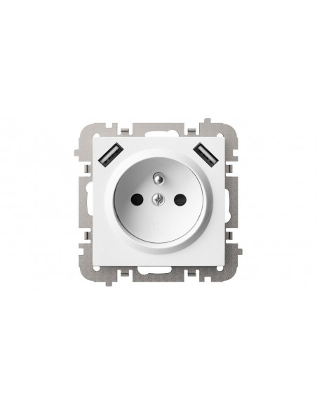 SANTRA gniazdo 2P+Z 2xUSB Zasilające bez ramki podtynkowe biały 4188-10