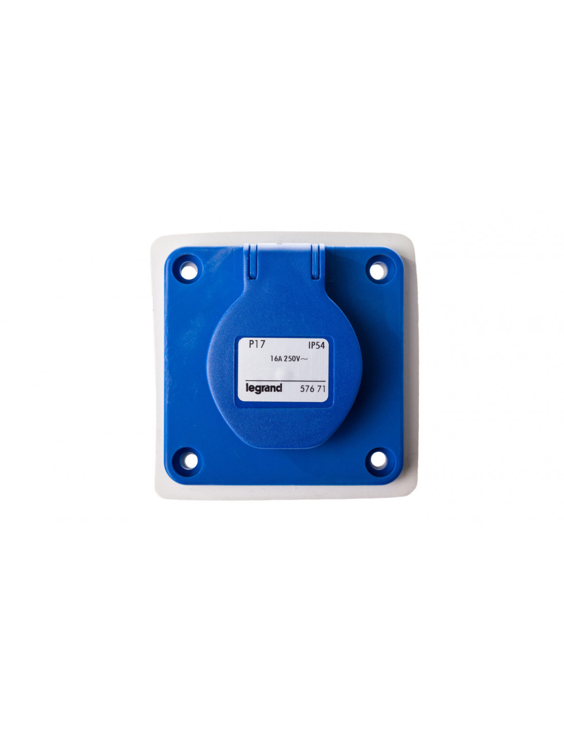 LEGRAND zatrudnia na świecie 33 000 osób. Posiada ponad 30 fabryk na całym świecie i ciągle pracuje nad nowymi rozwiązaniami. LEGRAND jest firmą z bardzo dużym doświadczeniem na rynku osprzętu elektroinstalacyjnego. Cała aparatura posiada międzynarodowe certyfikaty, spełnia normy bezpieczeństwa i jest konstruowana z najlepszych jakościowo materiałów. Urządzenia tej marki znajdą swoje zastosowanie zarówno w budownictwie mieszkalnym, komercyjnym, jak i przemysłowym. Powyższe gniazdo tablicowe zostało wytworzone wraz z uziemieniem. Wyprodukowano je z tworzywa termoplastycznego w kolorze niebieskim. Kierunek wprowadzania wtyczki jest prosty. Rozmiar flanszy wynosi 75x75 mm. Gniazdo jest bezhalogenowe, nie można go wykorzystywać w warunkach trudnych. IP54 to stopień ochrony nadany przez producenta. Mówi on o ochronie osprzętu na działanie wody, kurzu i pyłów. Dzięki temu gniazdo z powodzeniem może być używane na zewnątrz budynków. Seria P17 to aparatura i osprzęt przeznaczona dla budownictwa komercyjnego i przemysłowego.